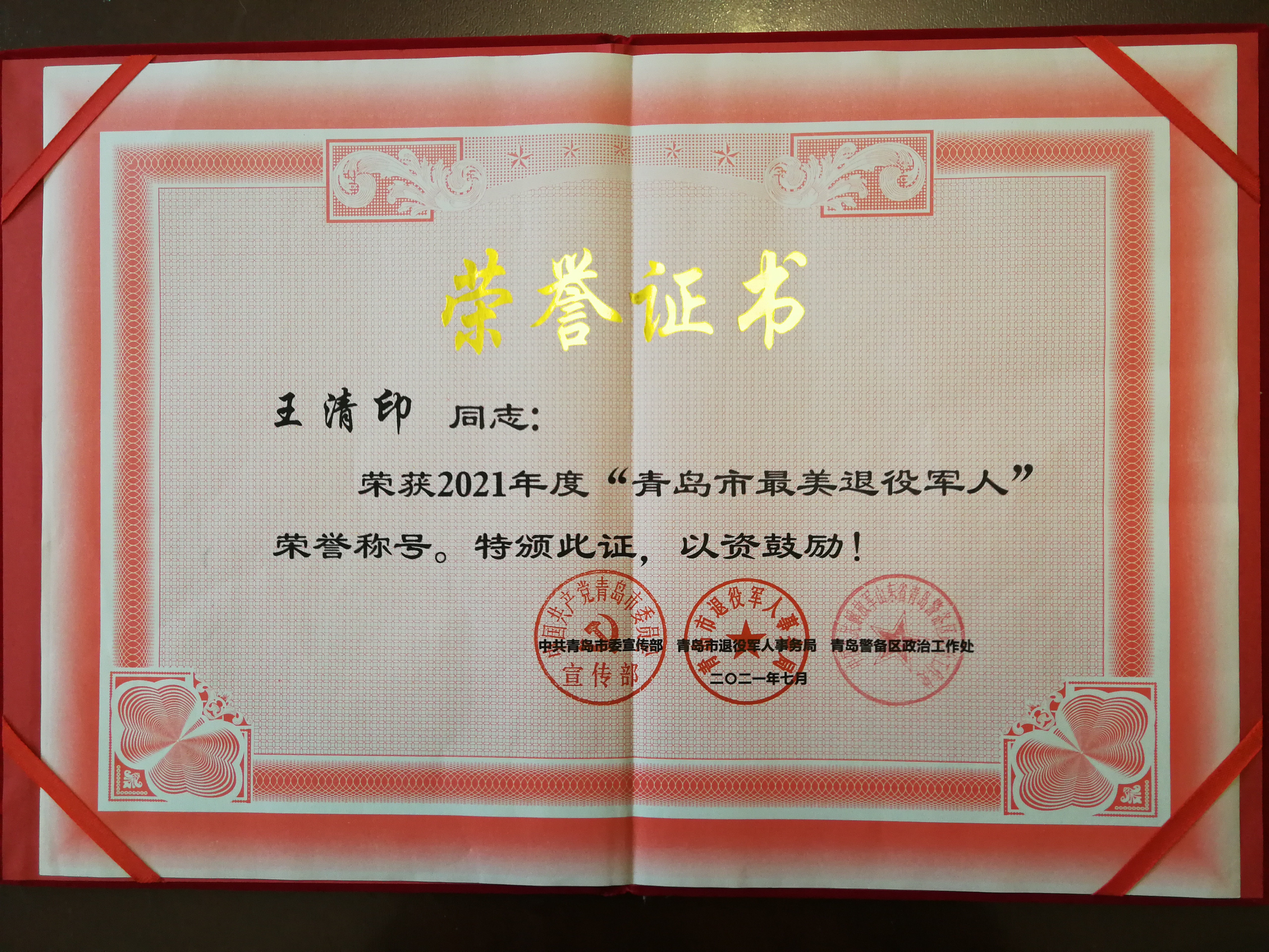 7月29日下午,在第94個“八一”建軍節(jié)來臨之際,由青島市委宣傳部、青島市退役軍人事務(wù)局、青島警備區(qū)政治工作處等部門聯(lián)合舉辦的“2021年度青島市最美退役軍人”頒獎活動在青島市軍隊離休退休干部活動中心隆重舉行。中國水產(chǎn)科學(xué)研究院黃海水產(chǎn)研究所原所長王清印榮獲“2021年度青島市最美退役軍人”稱號。