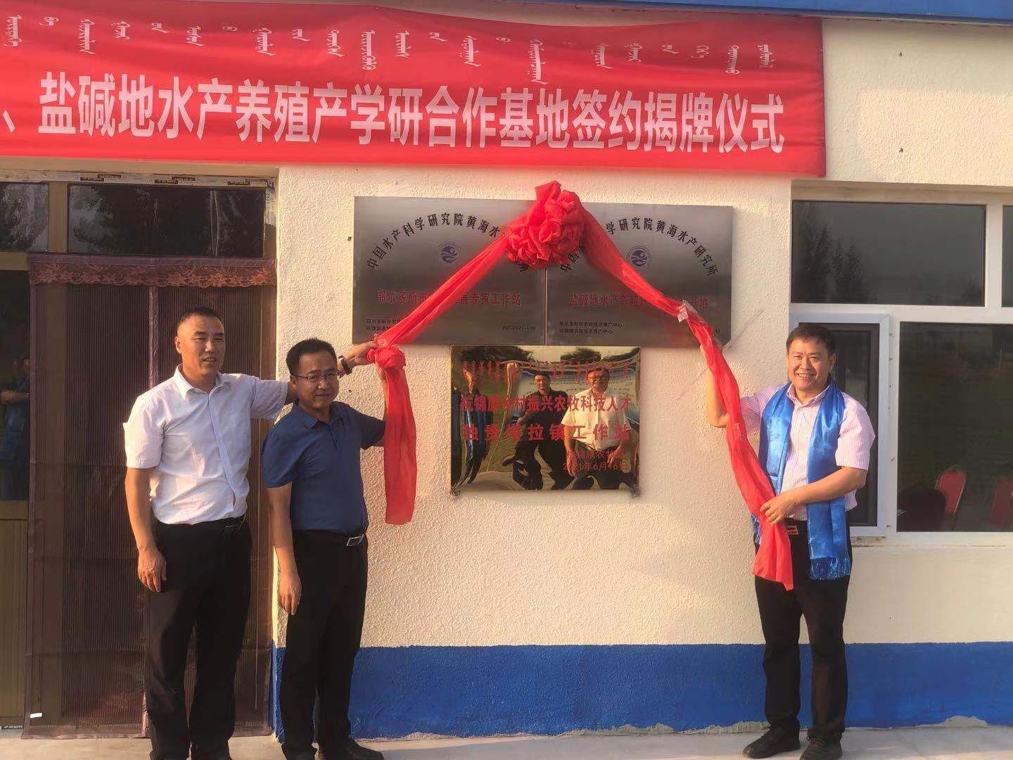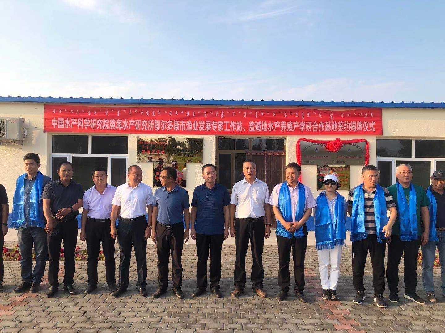 會(huì)后,孔杰副所長(zhǎng)代表黃海水產(chǎn)研究所在鄂爾多斯市杭錦旗獨(dú)貴塔拉鎮(zhèn)農(nóng)牧科技專家工作站與內(nèi)蒙古自治區(qū)杭錦旗農(nóng)牧技術(shù)推廣中心、鄂爾多斯市農(nóng)牧技術(shù)推廣中心的代表簽訂了三方合作協(xié)議,并舉行了“鄂爾多斯市漁業(yè)發(fā)展專家工作站”“鹽堿地水產(chǎn)養(yǎng)殖產(chǎn)學(xué)研合作基地”揭牌儀式。