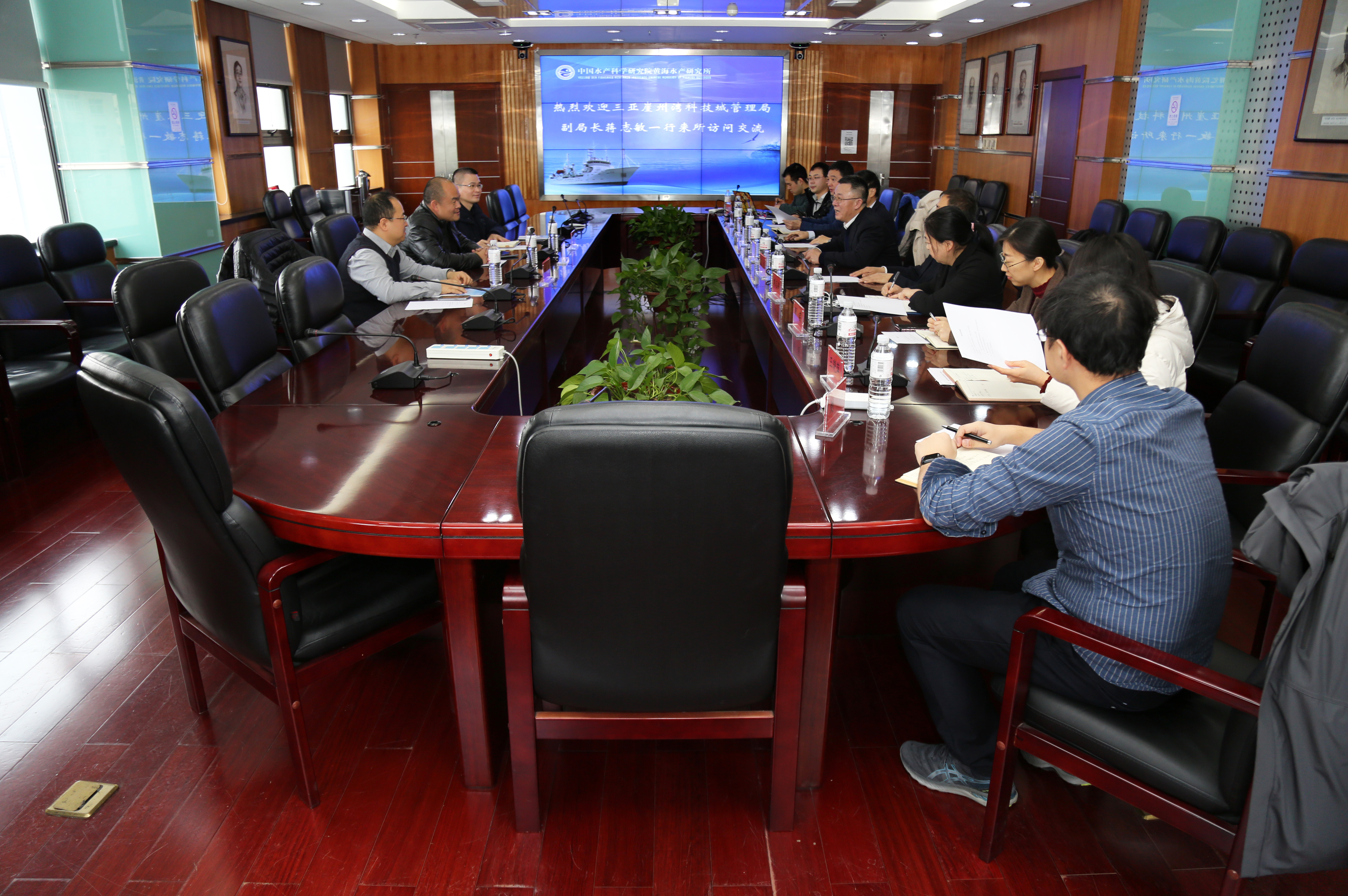 1月12日,三亞崖州灣科技城管理局副局長蔣志敏、三亞崖州灣農漁業(yè)發(fā)展有限公司總經(jīng)理趙磊、南繁科技城有限公司招商總監(jiān)吳瑋霖等一行到中國水產科學研究院黃海水產研究所訪問交流,商談產學研合作相關事宜。黃海水產研究所所長金顯仕、副所長孔杰和中國工程院院士陳松林等接待了蔣志敏副局長一行,并進行了座談??蒲刑?、成果轉化處和基因組室等部門相關負責人和專家參加了座談交流活動。