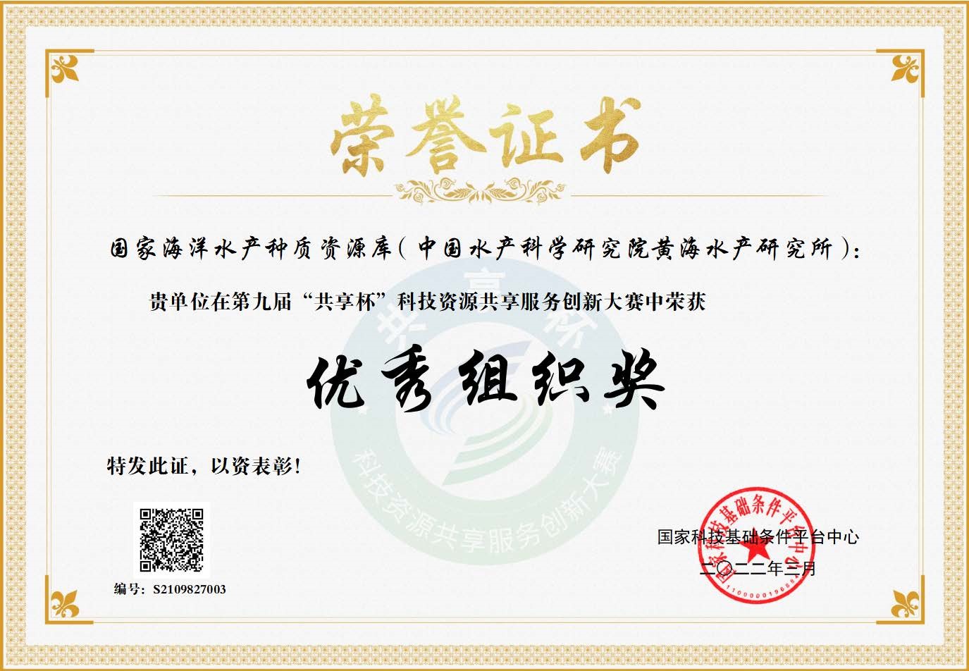 3月30日,科技部國(guó)家科技基礎(chǔ)條件平臺(tái)中心公布了第九屆“共享杯”科技資源共享服務(wù)創(chuàng)新大賽獲獎(jiǎng)作品和表彰獎(jiǎng)勵(lì)名單,中國(guó)水產(chǎn)科學(xué)研究院黃海水產(chǎn)研究所牽頭建設(shè)的國(guó)家海洋水產(chǎn)種質(zhì)資源庫(kù)榮獲大賽優(yōu)秀組織獎(jiǎng),劉志鴻、趙付文兩位同志獲評(píng)突出貢獻(xiàn)獎(jiǎng)。