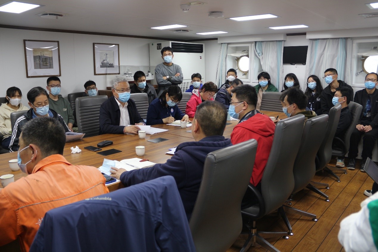 “藍(lán)海101”號(hào)船長(zhǎng)禹昊匯報(bào)了船舶備航情況,春季航段負(fù)責(zé)人時(shí)永強(qiáng)博士詳細(xì)介紹了航次調(diào)查內(nèi)容、搭載項(xiàng)目、搭載單位和人員等總體情況。項(xiàng)目首席科學(xué)家欒青杉副研究員代表項(xiàng)目組感謝各相關(guān)單位對(duì)項(xiàng)目的支持,希望各位科考隊(duì)員珍惜參與科學(xué)調(diào)查的機(jī)會(huì),在調(diào)查期間發(fā)現(xiàn)現(xiàn)象、認(rèn)識(shí)規(guī)律,圍繞關(guān)鍵科學(xué)問(wèn)題完成科學(xué)調(diào)查任務(wù)。漁業(yè)資源與生態(tài)系統(tǒng)研究室主任單秀娟研究員對(duì)各單位人員搭載“藍(lán)海101”號(hào)表示歡迎和感謝。她強(qiáng)調(diào),國(guó)家自然科學(xué)基金委共享航次的一個(gè)重要任務(wù)是要在保證共享數(shù)據(jù)獲取的前提下兼顧專業(yè)數(shù)據(jù)的獲取,希望大家同舟共濟(jì)、加強(qiáng)合作交流,在確保安全第一前提下,保質(zhì)保量獲取樣品與數(shù)據(jù)。