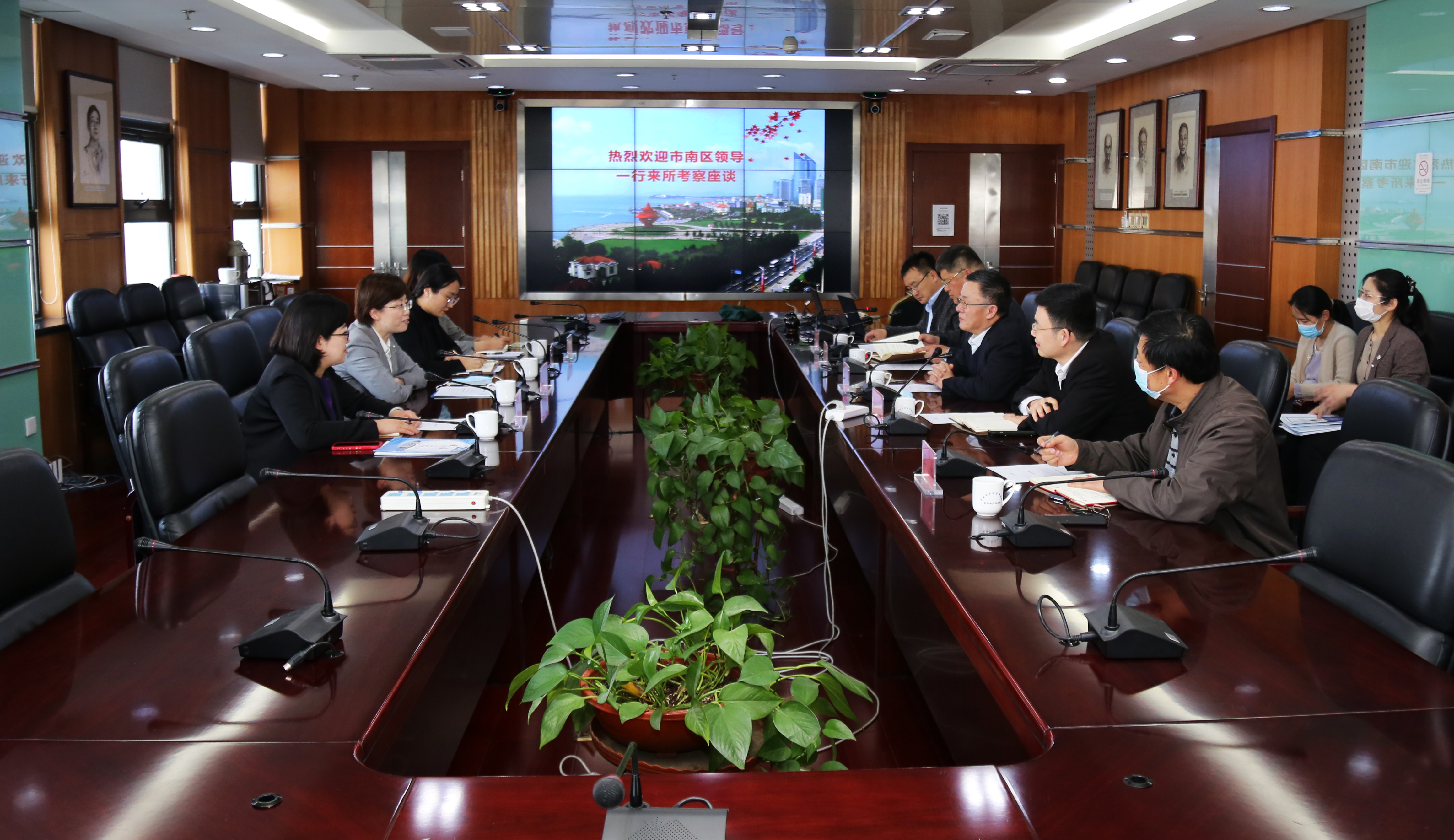 金顯仕所長對馮洪珍副區(qū)長一行來訪表示歡迎,對市南區(qū)政府長期以來的支持和幫助表示感謝,結(jié)合所宣傳片介紹了我所建所七十多年來在科技創(chuàng)新、技術(shù)支撐、成果轉(zhuǎn)化、人才隊伍建設(shè)等方面的概況,并重點就國家海洋漁業(yè)生物種質(zhì)資源庫運行情況、所園區(qū)新冠肺炎疫情防控工作總體情況以及科研創(chuàng)新平臺建設(shè)等工作進行了詳細說明。金顯仕所長表示,黃海水產(chǎn)研究所將繼續(xù)堅持漁業(yè)科技創(chuàng)新引領(lǐng),助力實現(xiàn)市南區(qū)打造新時代社會主義現(xiàn)代化國際大都市樣板區(qū)目標。