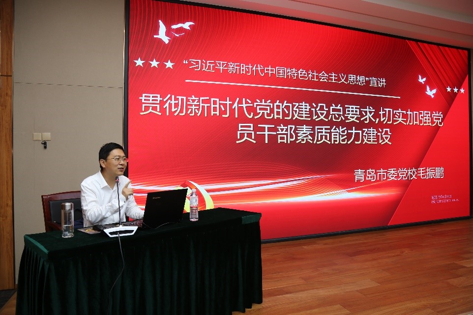 毛振鵬教授以“貫徹新時代黨的建設(shè)能力總要求,切實加強黨員干部素質(zhì)能力建設(shè)”為題,圍繞黨員干部要提高意識形態(tài)能力——堅定不移地做好意識形態(tài)工作、爭做嚴(yán)守黨紀(jì)的模范——學(xué)習(xí)貫徹《中國共產(chǎn)黨紀(jì)律檢查委員會工作條例》等方面進行深入解讀。毛教授從當(dāng)前意識形態(tài)安全面臨的新形勢、警惕四種社會思潮所帶來的風(fēng)險、加強我國意識形態(tài)安全的對策等三方面對新時期意識形態(tài)工作進行了深入分析,并從政治定位、工作原則、指導(dǎo)思想、領(lǐng)導(dǎo)體制、工作職責(zé)等方面對《中國共產(chǎn)黨紀(jì)律檢查委員會工作條例》進行了全面解讀。毛教授的講解站位高遠(yuǎn)、生動翔實,既有政治高度,又有實踐深度,對黨務(wù)管理工作和紀(jì)檢監(jiān)察工作具有很強的指導(dǎo)意義和推動作用。