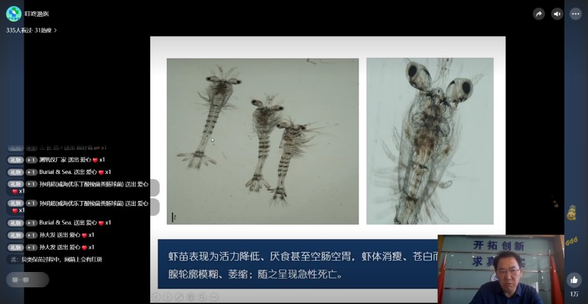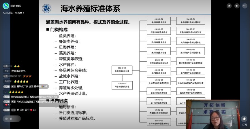 黃海水產研究所組織相關專家,進行了對蝦疾病防控、海參養(yǎng)殖苗種繁育、水產育種技術、生態(tài)健康養(yǎng)殖模式、海水標準化發(fā)展歷程、海水養(yǎng)殖標準體系、漁藥開發(fā)、漁藥安全使用等方面的技術培訓。來自全國沿海地區(qū)養(yǎng)殖基層技術人員1100余人線上參加了此次活動。