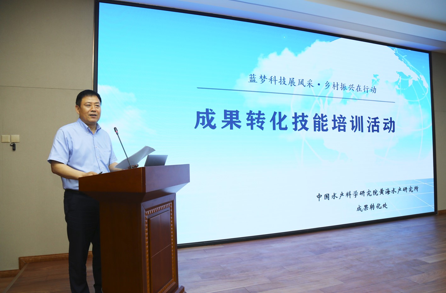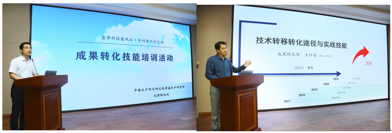 為提升科技人員技術推廣能力和支撐服務水平,6月17日,黃海水產研究所組織召開“藍夢科技展風采?鄉(xiāng)村振興在行動”主題成果轉化技能培訓。各部門負責人、科研人員和成果轉化業(yè)務骨干等60余名職工參加了培訓,黃海水產研究所副所長孔杰出席了活動。