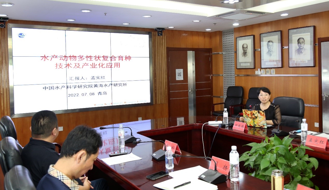 孔杰副所長(zhǎng)詳細(xì)分析了南美白對(duì)蝦產(chǎn)業(yè)發(fā)展的相關(guān)問題,希望雙方共同尋求全方位的合作切入點(diǎn),助力山東種業(yè)集團(tuán)有限公司做大做強(qiáng)水產(chǎn)領(lǐng)域業(yè)務(wù)板塊,攜手開創(chuàng)合作共贏新局面。種質(zhì)資源與工程育種研究室主任孟憲紅作了題為《水產(chǎn)動(dòng)物多性狀復(fù)合育種技術(shù)及產(chǎn)業(yè)化應(yīng)用》的報(bào)告,介紹了我國(guó)水產(chǎn)新品種概況,詳細(xì)講解了我所對(duì)蝦遺傳育種團(tuán)隊(duì)在新品種創(chuàng)制、技術(shù)創(chuàng)新和產(chǎn)業(yè)化應(yīng)用等方面的研究進(jìn)展,并就雙方下一步合作領(lǐng)域和內(nèi)容提出諸多合理化建議。