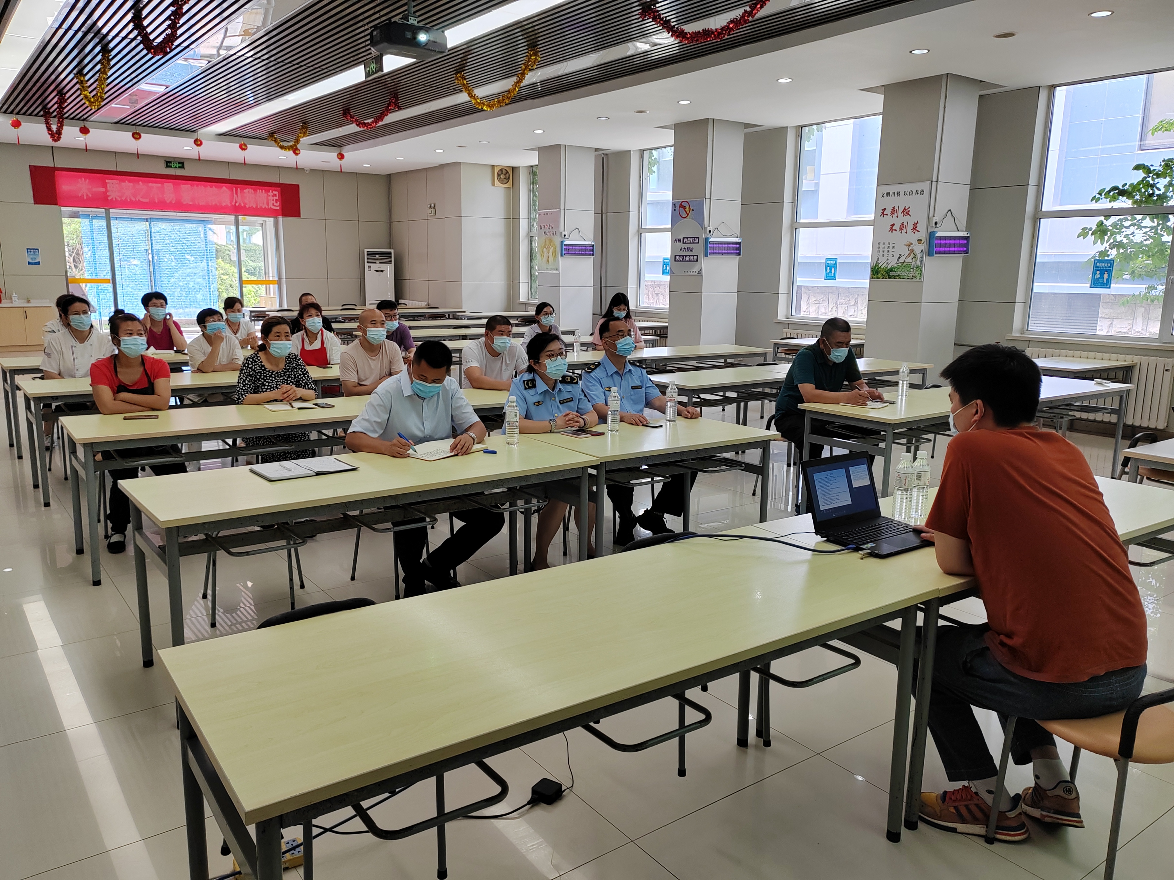 培訓(xùn)圍繞《食品安全法》《食品安全法實(shí)施條例》和《餐飲服務(wù)食品安全操作規(guī)范》等內(nèi)容,重點(diǎn)從原料采購、索證索票、原料儲存、加工制作、人員健康管理、清洗消毒和食品留樣等方面進(jìn)行詳細(xì)說明,結(jié)合典型案例講解食品安全知識,分析梳理日常監(jiān)管過程中發(fā)現(xiàn)的食品安全隱患,進(jìn)一步明確食品安全標(biāo)準(zhǔn)和具體要求。參訓(xùn)人員聚精會神聽講、積極踴躍提問,現(xiàn)場學(xué)習(xí)氛圍濃厚。