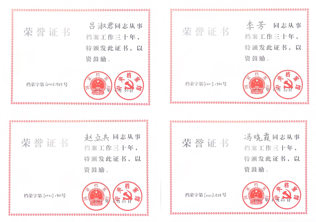 檔案工作是黨和國家的一項重要工作,是維護黨和國家歷史真實面貌的一項不可缺少的重要事業(yè)。近日,中國水產(chǎn)科學(xué)研究院黃海水產(chǎn)研究所馮曉霞、呂淑君、李芳、趙立兵等4位檔案工作者榮獲國家檔案局、中央檔案館從事檔案工作三十年榮譽證書。這是對他們數(shù)十年如一日,為檔案事業(yè)辛勤付出、無私奉獻精神的充分鼓勵和肯定。