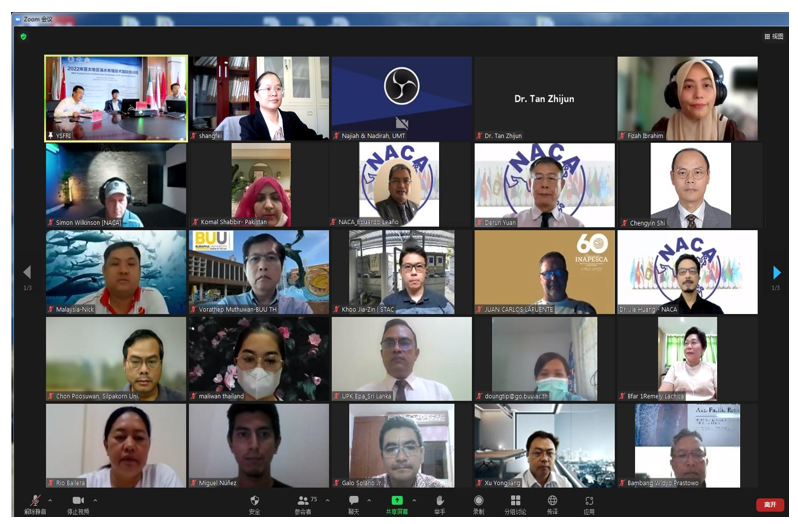 9月17日至23日,由中國(guó)水產(chǎn)科學(xué)研究院黃海水產(chǎn)研究所和亞太水產(chǎn)養(yǎng)殖中心網(wǎng)(NACA)秘書處、青島海洋國(guó)際合作中心、聯(lián)合國(guó)糧食及農(nóng)業(yè)組織亞太漁業(yè)委員會(huì)秘書處共同主辦的2022年亞太地區(qū)海水養(yǎng)殖技術(shù)培訓(xùn)班以“云課堂”方式成功舉辦。農(nóng)業(yè)農(nóng)村部漁業(yè)漁政管理局二級(jí)巡視員董金和,亞太水產(chǎn)養(yǎng)殖中心網(wǎng)總干事黃倢,中國(guó)水產(chǎn)學(xué)會(huì)理事長(zhǎng)王清印,中國(guó)水產(chǎn)科學(xué)研究院黃海水產(chǎn)研究所所長(zhǎng)金顯仕、副所長(zhǎng)葉乃好,NACA秘書處、黃海水產(chǎn)研究所專家以及來(lái)自19個(gè)國(guó)家和地區(qū)涉漁國(guó)際組織和非政府組織的116名學(xué)員出席了開(kāi)班儀式。開(kāi)班儀式由葉乃好副所長(zhǎng)主持。
