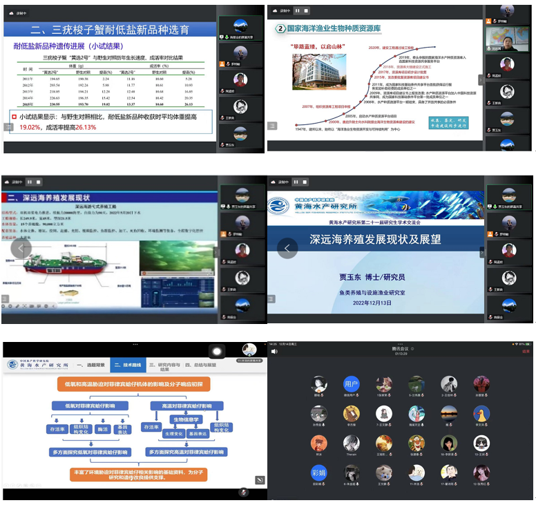 12月13日至14日,中國水產(chǎn)科學研究院黃海水產(chǎn)研究所線上舉行第二十一屆研究生學術(shù)交流會。本次交流會以“海洋漁業(yè)綠色高質(zhì)量發(fā)展”為主題,在所研究生、青年科技人員等100余人參加會議,會議由人事處副處長、研究生辦主任周孟姣主持。