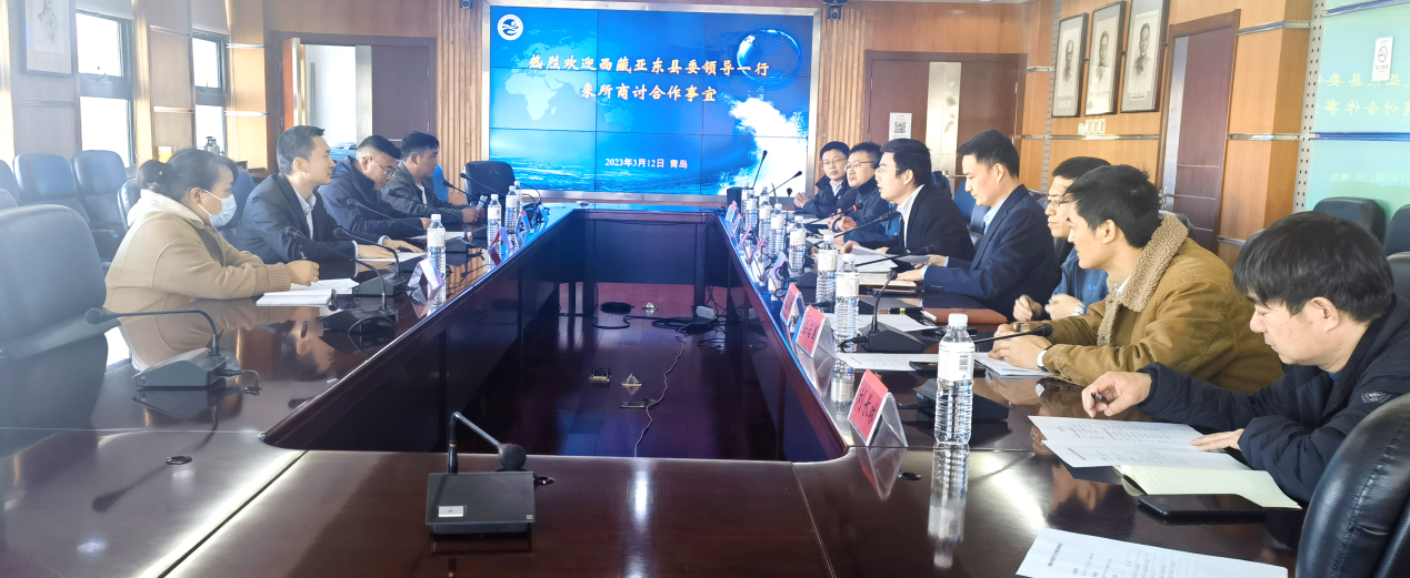 榮小軍副所長對劉韜副書記一行的到來表示熱烈歡迎,他結(jié)合宣傳片重點介紹了黃海水產(chǎn)研究所科技創(chuàng)新成效、人才隊伍建設和科技成果轉(zhuǎn)化情況等。他表示,所領導班子非常重視科技援藏工作,成立了專門的漁業(yè)科技援藏青年服務團,并從專業(yè)技術、科技人才和專項經(jīng)費等方面給予支持。希望雙方今后繼續(xù)加深合作,充分發(fā)揮漁業(yè)科技在推動產(chǎn)業(yè)綠色發(fā)展和邊疆經(jīng)濟建設方面的積極作用。