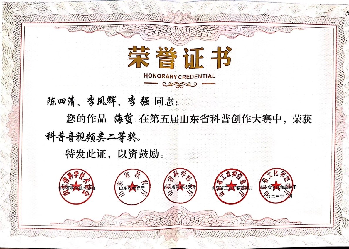 近日,山東省第五屆科普創(chuàng)作大賽獲獎作品公示。我所海水養(yǎng)殖生態(tài)與技術(shù)研究室珍稀海洋生物繁殖與保護(hù)團(tuán)隊提交的作品《海蜇》榮獲音視頻類二等獎。