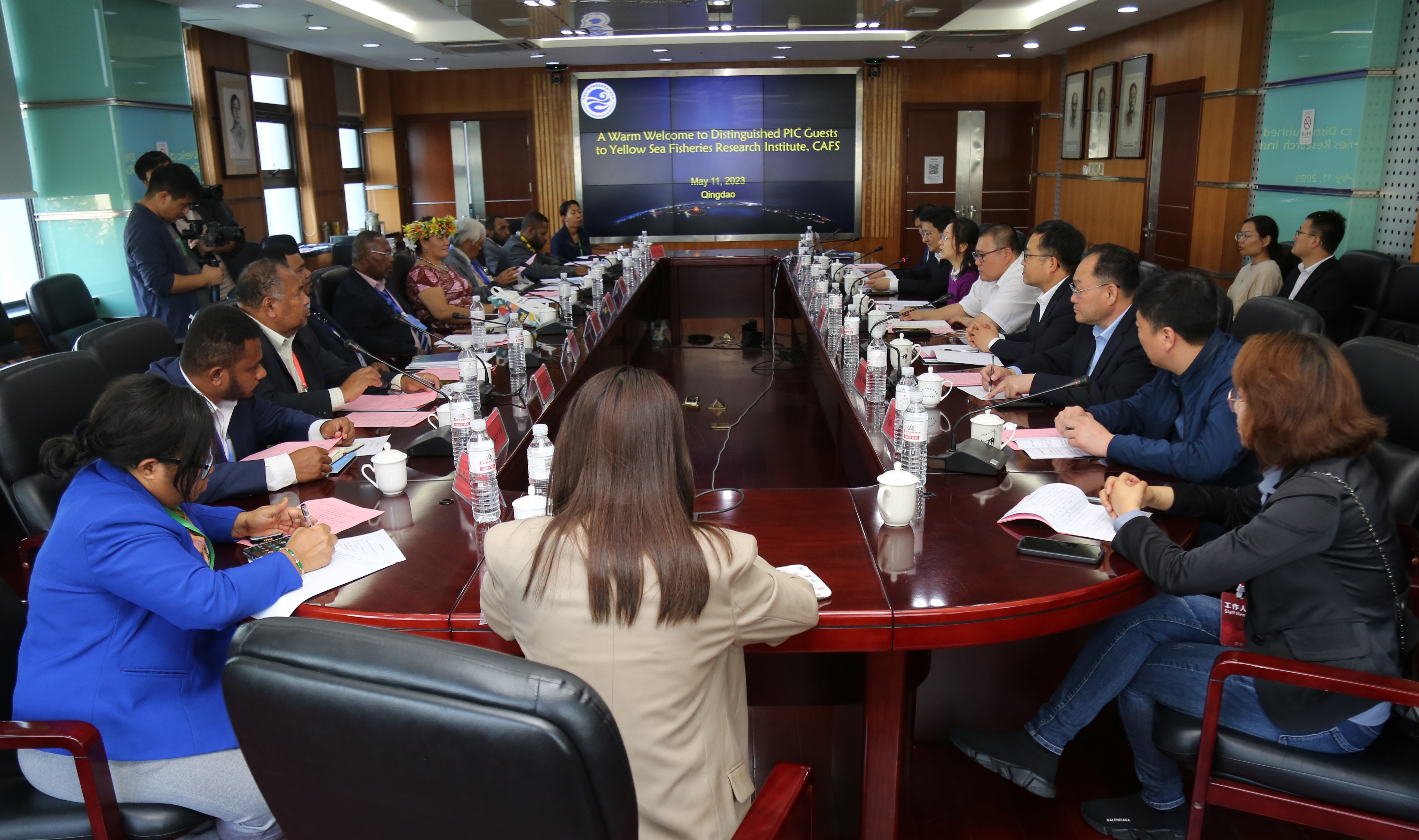 5月12日,所羅門群島漁業(yè)與海洋資源部部長(zhǎng)內(nèi)斯特?吉羅(Hon. Nestor Giro)、庫(kù)克群島農(nóng)業(yè)部部長(zhǎng)露絲?托吉-布朗(Hon. Rose Toki-Brown)、巴布亞新幾內(nèi)亞國(guó)家漁業(yè)局國(guó)際漁業(yè)事務(wù)經(jīng)理杰洛米?蒂歐提(Jerome Tioti)等太平洋島國(guó)漁業(yè)代表團(tuán)一行11人在農(nóng)業(yè)農(nóng)村部漁業(yè)漁政管理局國(guó)合處處長(zhǎng)于沛民、中國(guó)遠(yuǎn)洋漁業(yè)協(xié)會(huì)常務(wù)副會(huì)長(zhǎng)黃寶善、青島市市委副秘書長(zhǎng)林鑌、青島市海洋發(fā)展局副局長(zhǎng)戚永戰(zhàn)等陪同下到中國(guó)水產(chǎn)科學(xué)研究院黃海水產(chǎn)研究所訪問(wèn)交流。黃海水產(chǎn)研究所所長(zhǎng)金顯仕、所長(zhǎng)助理單秀娟以及相關(guān)職能和科研部門負(fù)責(zé)人接待了代表團(tuán)一行,并進(jìn)行座談。