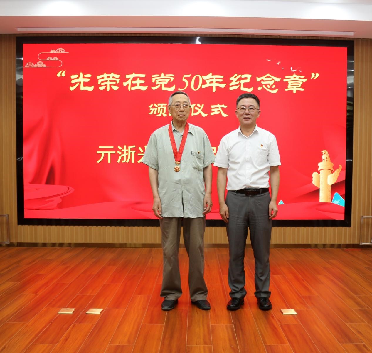 金顯仕所長(zhǎng)為我所黨齡達(dá)到50周年的老黨員代表張啟倫同志頒發(fā)了“光榮在黨50年”紀(jì)念章。今年我所獲得該紀(jì)念章的老黨員有亓浙興和張啟倫,這是我所自2021年國(guó)家頒發(fā)該紀(jì)念章以來(lái),第41和第42位符合要求的老黨員同志。