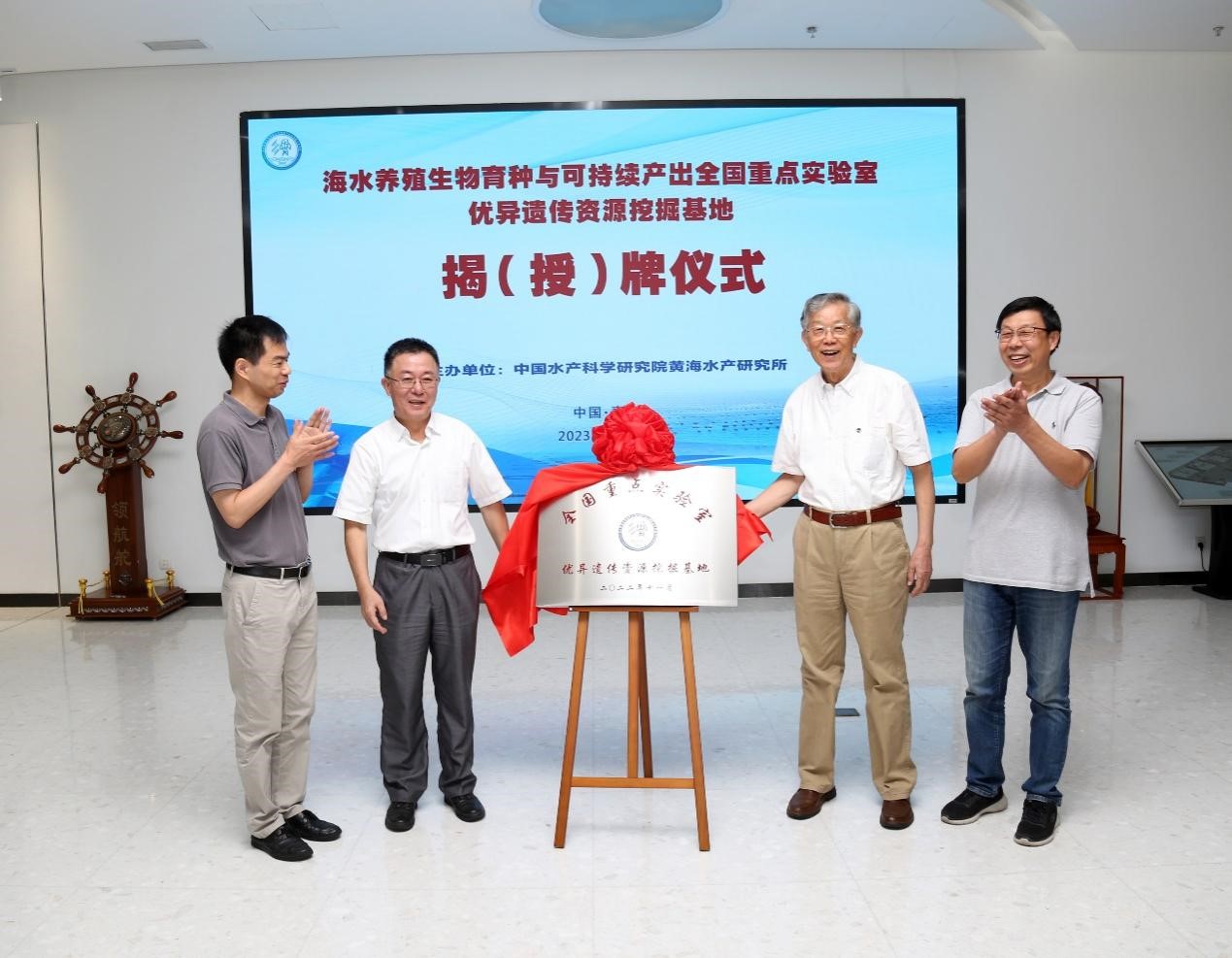 9月22日,海水養(yǎng)殖生物育種與可持續(xù)產(chǎn)出全國(guó)重點(diǎn)實(shí)驗(yàn)室優(yōu)異遺傳資源挖掘基地揭(授)牌儀式在國(guó)家海洋漁業(yè)生物種質(zhì)資源庫(kù)(以下簡(jiǎn)稱“資源庫(kù)”)成功舉辦。全國(guó)重點(diǎn)實(shí)驗(yàn)室首席科學(xué)家、中國(guó)工程院院士唐啟升,中國(guó)水產(chǎn)科學(xué)研究院黃海水產(chǎn)研究所所長(zhǎng)金顯仕為應(yīng)用牽引基地揭(授)牌,副所長(zhǎng)榮小軍、全國(guó)重點(diǎn)實(shí)驗(yàn)室研究方向?qū)W術(shù)帶頭人、資源庫(kù)科研人員及相關(guān)職能部門負(fù)責(zé)人等近30人參加儀式。儀式由黃海水產(chǎn)研究所副所長(zhǎng)、全國(guó)重點(diǎn)實(shí)驗(yàn)室副主任葉乃好主持。