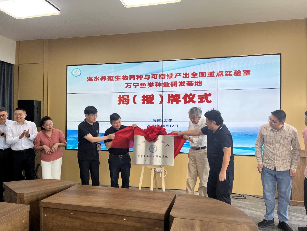 10月12日,海水養(yǎng)殖生物育種與可持續(xù)產(chǎn)出全國重點(diǎn)實驗室萬寧魚類種業(yè)研發(fā)基地揭(授)牌儀式在萬寧林蘭水產(chǎn)養(yǎng)殖有限公司成功舉辦。全國重點(diǎn)實驗室首席科學(xué)家、中國工程院院士唐啟升,中國水產(chǎn)科學(xué)研究院黃海水產(chǎn)研究所副所長葉乃好,萬寧市政府黨組成員、副市長鄭忠發(fā)及萬寧市農(nóng)業(yè)農(nóng)村局干部鄧佳林、海洋漁業(yè)協(xié)會會長葉慧強(qiáng)等有關(guān)部門負(fù)責(zé)人參加活動。