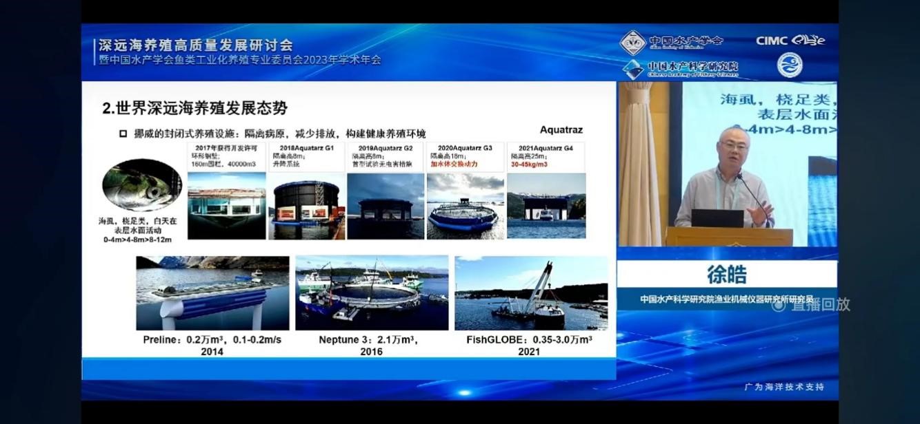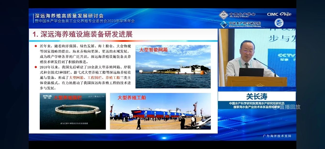 針對深遠(yuǎn)海養(yǎng)殖發(fā)展過程中的熱點、難點問題,中國工程院院士、中國海洋大學(xué)教授麥康森,中國工程院院士、中國水產(chǎn)科學(xué)研究院黃海水產(chǎn)研究所研究員陳松林,挪威技術(shù)科學(xué)院院士、上海交通大學(xué)教授付世曉,中國水產(chǎn)科學(xué)研究院漁業(yè)機(jī)械儀器研究所研究員徐皓,國家海水魚產(chǎn)業(yè)技術(shù)體系首席科學(xué)家、中國水產(chǎn)科學(xué)研究院黃海水產(chǎn)研究所研究員關(guān)長濤等國內(nèi)深遠(yuǎn)海養(yǎng)殖領(lǐng)域知名專家、企業(yè)代表及青年專家等35人作會議報告。報告內(nèi)容涵蓋了深遠(yuǎn)海養(yǎng)殖設(shè)施裝備及安全保障、深遠(yuǎn)海工業(yè)化養(yǎng)殖智能管控技術(shù)、深遠(yuǎn)海適養(yǎng)種類篩選與種業(yè)工程、深遠(yuǎn)海養(yǎng)殖飼料營養(yǎng)及病害防控、深遠(yuǎn)海養(yǎng)殖魚類品質(zhì)評價及加工等產(chǎn)業(yè)鏈各環(huán)節(jié)。