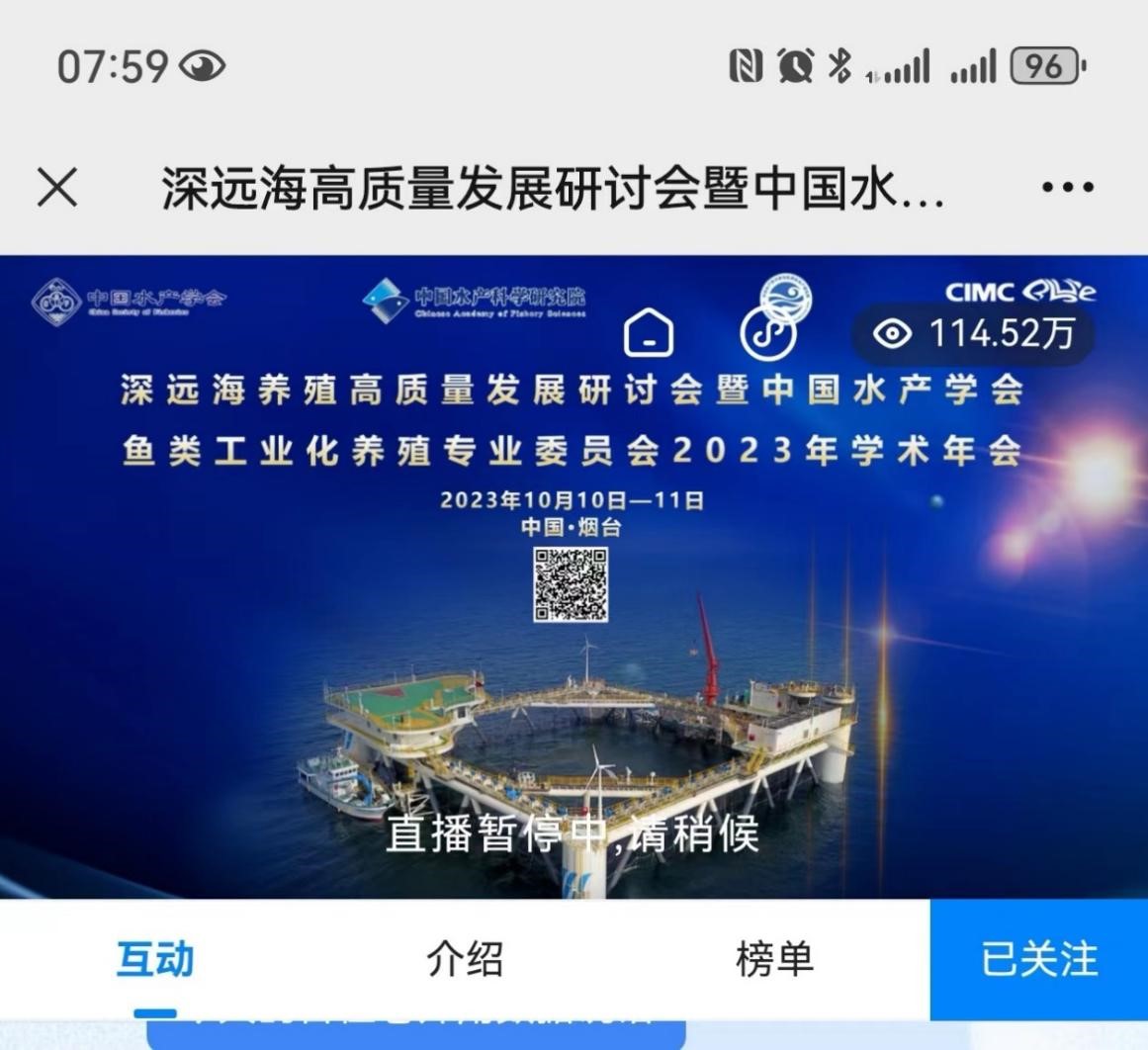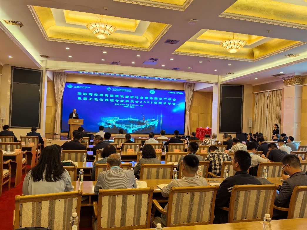 10月10日至11日,由中國水產(chǎn)學(xué)會和中國水產(chǎn)科學(xué)研究院主辦,中國水產(chǎn)學(xué)會魚類工業(yè)化養(yǎng)殖專業(yè)委員會、煙臺中集藍(lán)海洋科技有限公司、中國水產(chǎn)科學(xué)研究院黃海水產(chǎn)研究所共同承辦的深遠(yuǎn)海養(yǎng)殖高質(zhì)量發(fā)展研討會暨中國水產(chǎn)學(xué)會魚類工業(yè)化養(yǎng)殖專業(yè)委員會2023年學(xué)術(shù)年會在山東煙臺召開。來自全國深遠(yuǎn)海養(yǎng)殖和魚類工業(yè)化養(yǎng)殖相關(guān)的高校和科研單位專家學(xué)者、企業(yè)代表等150余人參會。大會開幕式由中國水產(chǎn)科學(xué)研究院黃海水產(chǎn)研究所副所長榮小軍主持。