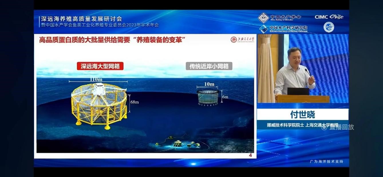 中國水產(chǎn)學(xué)會秘書長、全國水產(chǎn)技術(shù)推廣總站站長崔利鋒在講話中指出,深遠(yuǎn)海養(yǎng)殖是我國漁業(yè)現(xiàn)代化建設(shè)的重要方向之一,科技創(chuàng)新驅(qū)動深遠(yuǎn)海養(yǎng)殖高質(zhì)量發(fā)展大有可為。中國水產(chǎn)科學(xué)研究院副院長林祥明介紹了中國水產(chǎn)科學(xué)研究院在深遠(yuǎn)海養(yǎng)殖領(lǐng)域取得的重要創(chuàng)新成果,強(qiáng)調(diào)養(yǎng)殖設(shè)施安全、裝備智能化和深遠(yuǎn)海新品種是下一步攻關(guān)的重點內(nèi)容。山東省農(nóng)業(yè)農(nóng)村廳總農(nóng)藝師郭鵬、煙臺市海洋發(fā)展和漁業(yè)局局長孫華君、煙臺中集藍(lán)海洋科技有限公司總經(jīng)理郭福元分別就省、市和企業(yè)在深遠(yuǎn)海養(yǎng)殖方面的進(jìn)展進(jìn)行了闡述。農(nóng)業(yè)農(nóng)村部漁業(yè)漁政管理局養(yǎng)殖處主任科員劉莎莎出席會議。