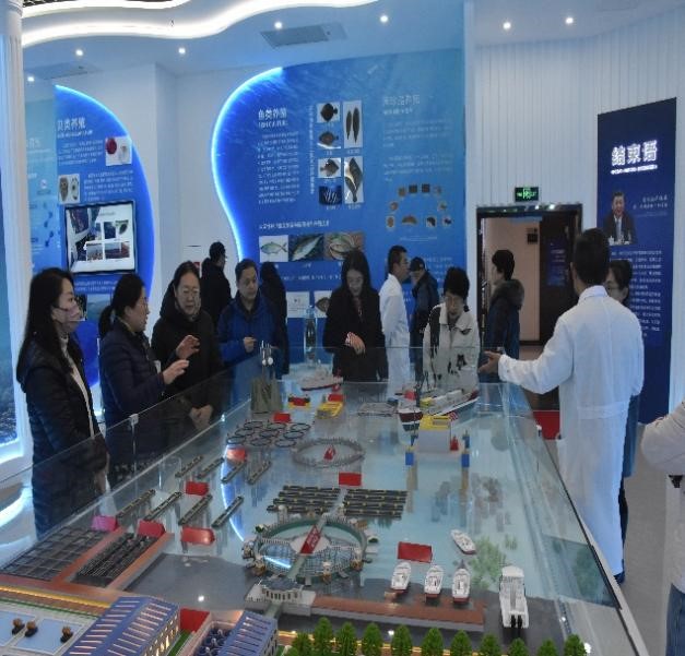 趙憲勇書記對(duì)陳立波副主委的到來表示歡迎,與調(diào)研組一同觀看了黃海水產(chǎn)研究所宣傳片,并介紹了資源庫基本情況。調(diào)研組一行參觀了資源庫科普展廳及海洋生物活體資源庫,詳細(xì)了解了我國海水養(yǎng)殖發(fā)展歷程、海洋漁業(yè)生物資源,以及我國在海洋生物種質(zhì)資源保藏利用、深遠(yuǎn)海養(yǎng)殖模式研究等方面的最新科研進(jìn)展。