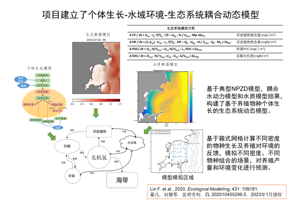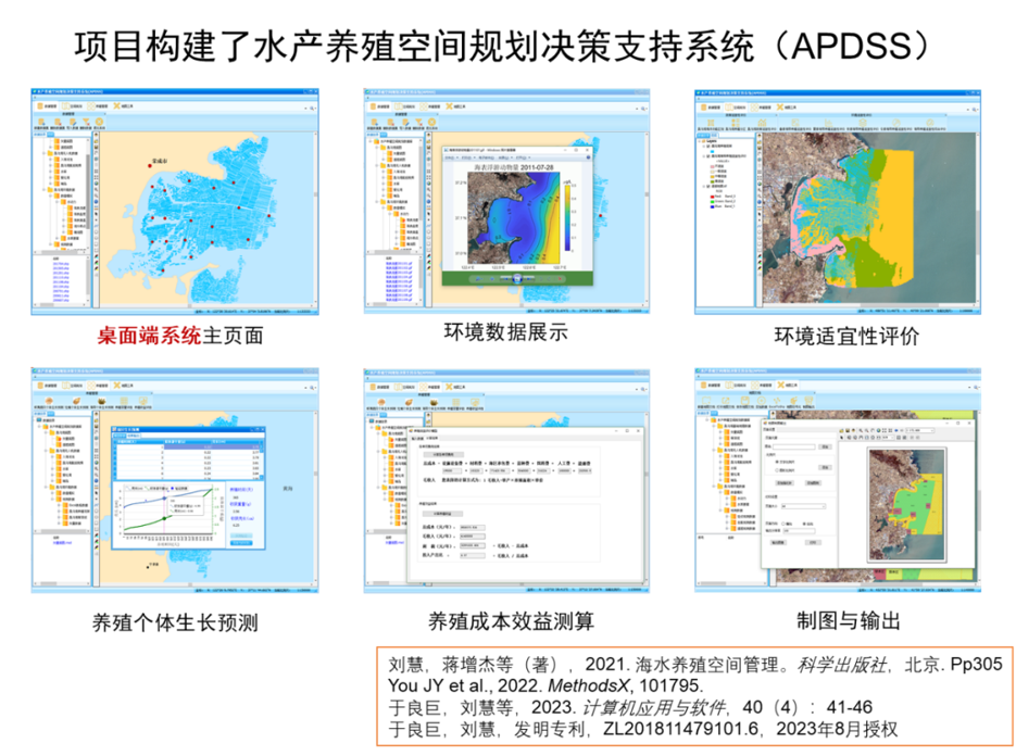 “基于生態(tài)系統(tǒng)的海水養(yǎng)殖空間規(guī)劃技術(shù)創(chuàng)建與集成應(yīng)用”成果由黃海水產(chǎn)研究所與中國科學(xué)院煙臺海岸帶研究所、自然資源部第二海洋研究所等7家單位共同完成。該成果遵循基于生態(tài)系統(tǒng)的海洋管理與空間規(guī)劃理論,構(gòu)建了海水養(yǎng)殖空間規(guī)劃理論與技術(shù)體系;以我國北方典型養(yǎng)殖海區(qū)桑溝灣為研究對象,建立了高分辨率水動力和水質(zhì)模型,實現(xiàn)了養(yǎng)殖海區(qū)水質(zhì)參數(shù)及其時空演變過程精細化模擬;以環(huán)境數(shù)據(jù)為驅(qū)動因子,構(gòu)建了海帶、牡蠣、扇貝、鮑等主要海水養(yǎng)殖生物動態(tài)能量學(xué)模型,實現(xiàn)了生物個體生長模擬和預(yù)測;以水質(zhì)模型和養(yǎng)殖生物個體生長模型為基礎(chǔ),建立了養(yǎng)殖容量評估模型,實現(xiàn)了養(yǎng)殖容量動態(tài)評估;基于政策合規(guī)性和環(huán)境條件綜合研判,建立了水產(chǎn)養(yǎng)殖適宜性評價方法;通過集成上述評估方法并進行軟件開發(fā),構(gòu)建了基于GIS技術(shù)的桌面端和網(wǎng)絡(luò)端“水產(chǎn)養(yǎng)殖空間規(guī)劃決策支持系統(tǒng)”(APDSS),并在典型養(yǎng)殖區(qū)開展應(yīng)用示范。APDSS集成了多維環(huán)境數(shù)據(jù),具有良好的圖形界面和可操作性,實現(xiàn)了環(huán)境數(shù)據(jù)查詢與展示、海水養(yǎng)殖場選址合規(guī)性與環(huán)境適宜性評價、養(yǎng)殖生物生長預(yù)測和養(yǎng)殖容量評估,為海水養(yǎng)殖空間規(guī)劃和生產(chǎn)管理提供了決策支持。項目取得發(fā)明專利2項、軟件著作權(quán)7項,發(fā)表論著33篇(部)。經(jīng)青島市科技成果標(biāo)準(zhǔn)化評價,該成果技術(shù)成熟度為13級,技術(shù)創(chuàng)新度為3級,技術(shù)先進度為7級;該成果整體水平達到國際領(lǐng)先水平。