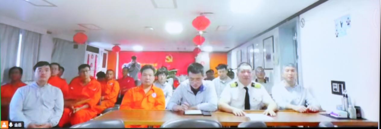 所領(lǐng)導(dǎo)班子認(rèn)真聽取了船長(zhǎng)禹昊和首席科學(xué)家金岳匯報(bào)船舶海上運(yùn)行情況和科學(xué)調(diào)查任務(wù)完成情況,并向克服高溫惡劣天氣等不利因素,仍時(shí)刻堅(jiān)守崗位一線的51名出海人員及其家人表示深切關(guān)懷和新春?jiǎn)柡颉?/p>