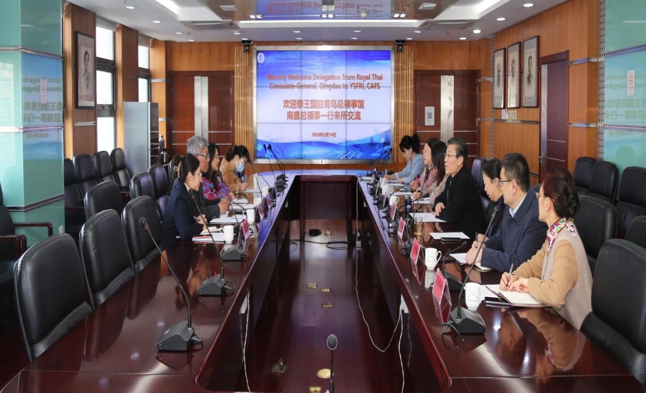 3月14日,泰王國(guó)駐青島總領(lǐng)事館Sata Arayakul總領(lǐng)事等一行4人到中國(guó)水產(chǎn)科學(xué)研究院黃海水產(chǎn)研究所訪問(wèn)交流。黃海水產(chǎn)研究所黨委書(shū)記趙憲勇及相關(guān)部門(mén)負(fù)責(zé)人與專家接待了Sata Arayakul總領(lǐng)事一行,并進(jìn)行了座談。