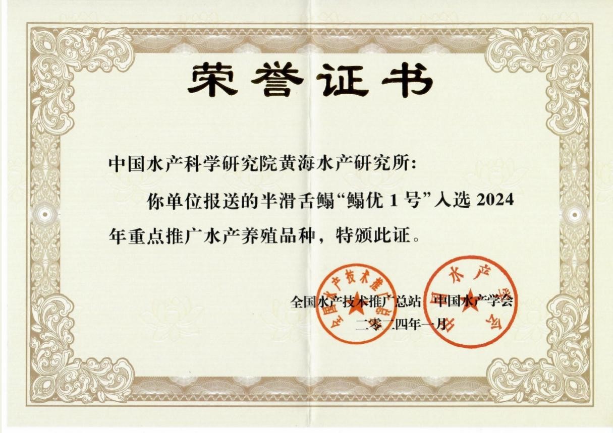 為充分發(fā)揮科技對漁業(yè)高質量發(fā)展和鄉(xiāng)村產(chǎn)業(yè)振興的支撐引領作用,加快漁業(yè)當家品種、優(yōu)良品種和先進適用技術的推廣應用,全國水產(chǎn)技術推廣總站、中國水產(chǎn)學會組織開展了2024年重點推廣水產(chǎn)養(yǎng)殖品種和重點推廣水產(chǎn)養(yǎng)殖技術遴選工作。經(jīng)省級水產(chǎn)技術推廣部門推薦、專家評審等程序,共遴選出29個重點推廣水產(chǎn)養(yǎng)殖品種和15項重點推廣水產(chǎn)養(yǎng)殖技術(http://www.nftec.agri.cn/tzgg/202401/t20240111_8600419.htm)。中國水產(chǎn)科學研究院黃海水產(chǎn)研究所主導培育的半滑舌鰨“鰨優(yōu)1號”新品種入選2024年重點推廣水產(chǎn)養(yǎng)殖品種。
