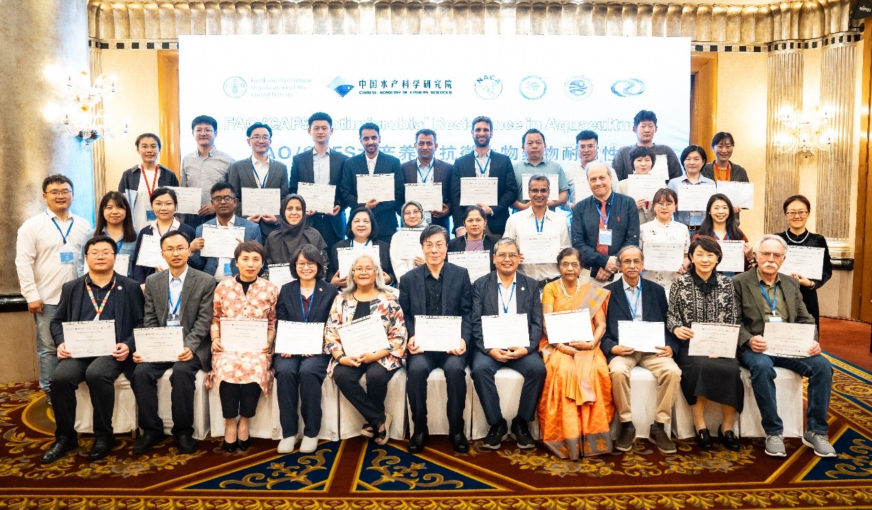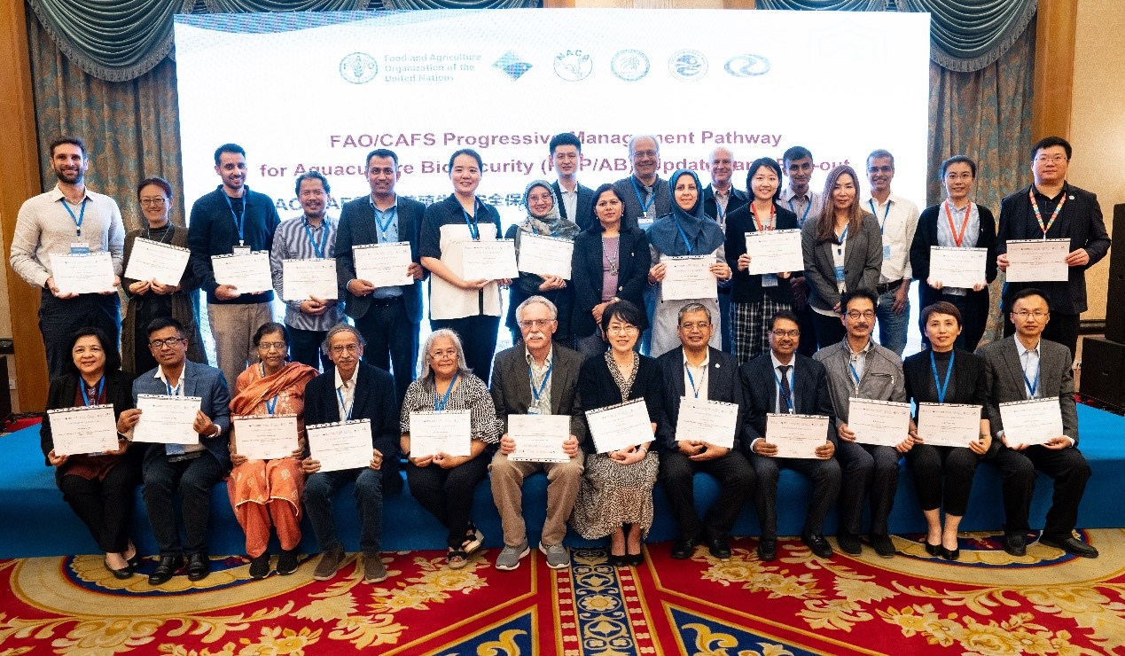 “水產(chǎn)養(yǎng)殖生物安全保障漸進式管理途徑”更新與推廣培訓(xùn)證書頒發(fā)合影