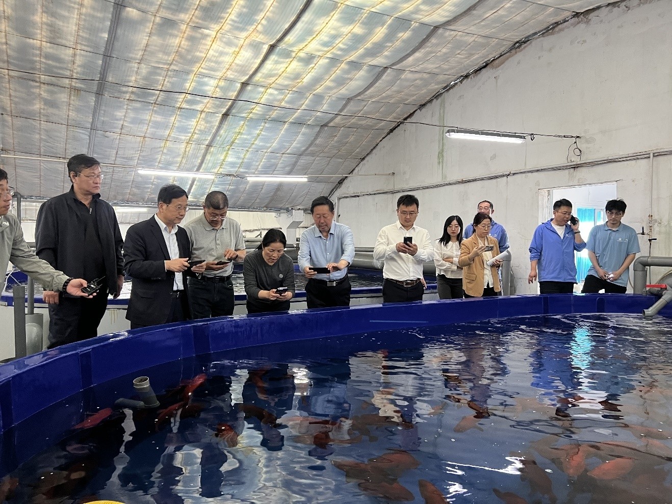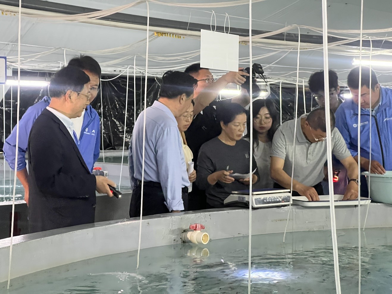 專家現(xiàn)場查看紅瓜子斑親魚種質(zhì)庫