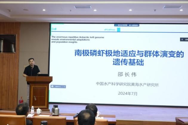 邵長偉副所長和育種室欒生副主任作為導(dǎo)師代表分別作了題為“南極磷蝦極地適應(yīng)與其群體演變的遺傳基礎(chǔ)”和“南美白對蝦SPF良種選育關(guān)鍵技術(shù)研發(fā)及應(yīng)用”的學(xué)術(shù)分享,鼓勵同學(xué)們珍惜當(dāng)下的時光,勇敢嘗試,追尋理想,努力實現(xiàn)自我價值。