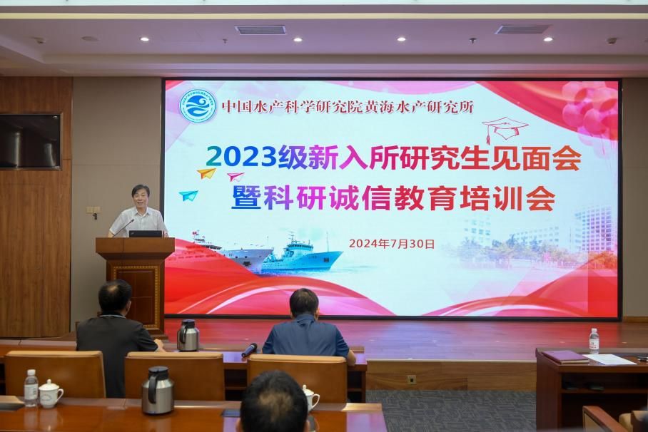 7月30日,中國水產(chǎn)科學(xué)研究院黃海水產(chǎn)研究所召開2023級研究生入所見面會暨科研誠信教育培訓(xùn)會,黃海所黨委書記趙憲勇、副所長邵長偉、中國水產(chǎn)科學(xué)研究院人才處副處長趙鵬飛及王琦博士、黃海所相關(guān)部門負(fù)責(zé)人、研究生導(dǎo)師代表、新入所2023級研究生以及中國水產(chǎn)科學(xué)研究院2024年優(yōu)秀大學(xué)生暑期夏令營營員等130余人參加了本次活動?;顒佑裳芯可k公室主任周孟姣主持。