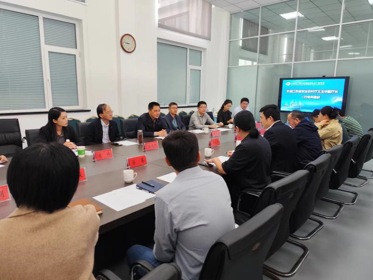 10月11日,江蘇省農(nóng)業(yè)農(nóng)村廳副廳長王玉華、江蘇省漁業(yè)技術(shù)推廣中心副主任黃婷、江蘇省淡水水產(chǎn)研究所所長潘建林等一行8人到中國水產(chǎn)科學(xué)研究院黃海水產(chǎn)研究所調(diào)研交流,黃海所副所長榮小軍、國家海水魚產(chǎn)業(yè)技術(shù)體系首席科學(xué)家關(guān)長濤、科研處處長劉志鴻及黃海所種質(zhì)資源保護、育種方向相關(guān)專家參加了座談。
