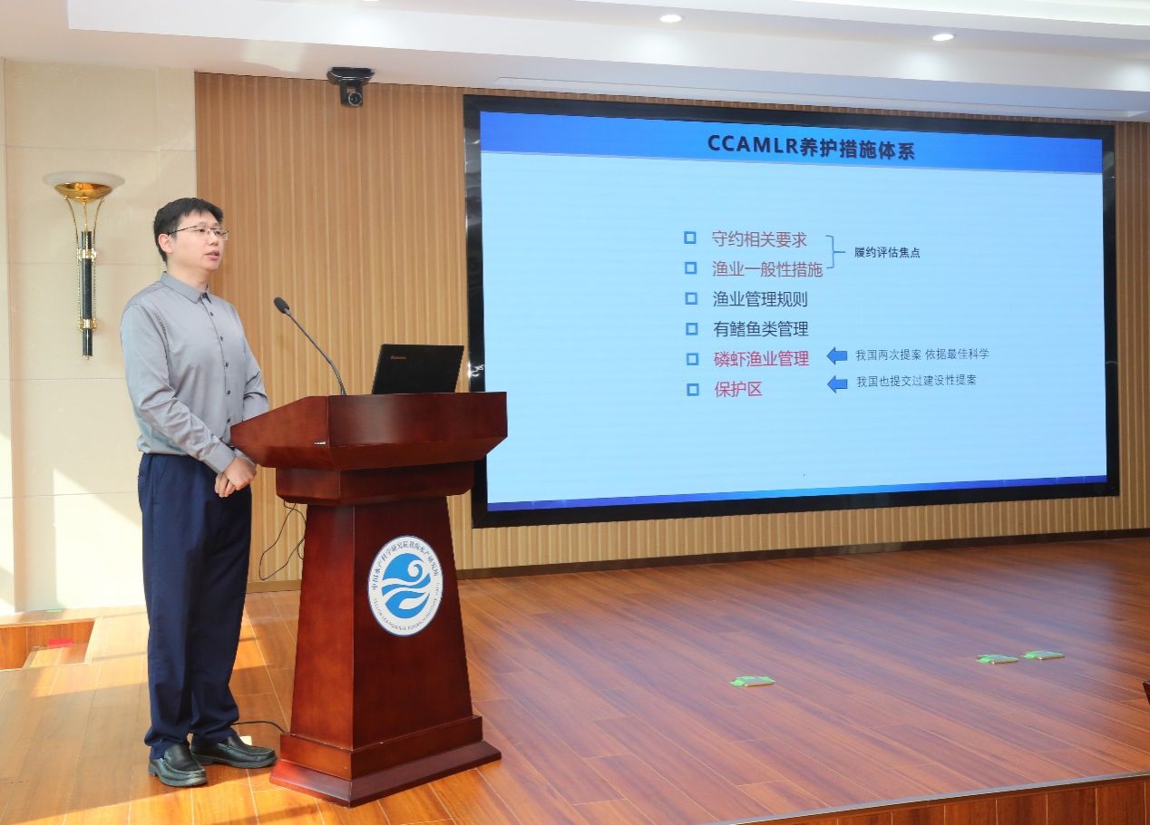 黃海所應一平博士匯報了我國南極漁業(yè)背景及履約基本情況以及我國在CCAMLR組織中的實踐情況等。中國科學院海洋研究所副所長沙忠利、青島華大基因研究院專項科學家孫帥、青島南極維康生物科技有限公司董事長劉福貴等先后交流發(fā)言。