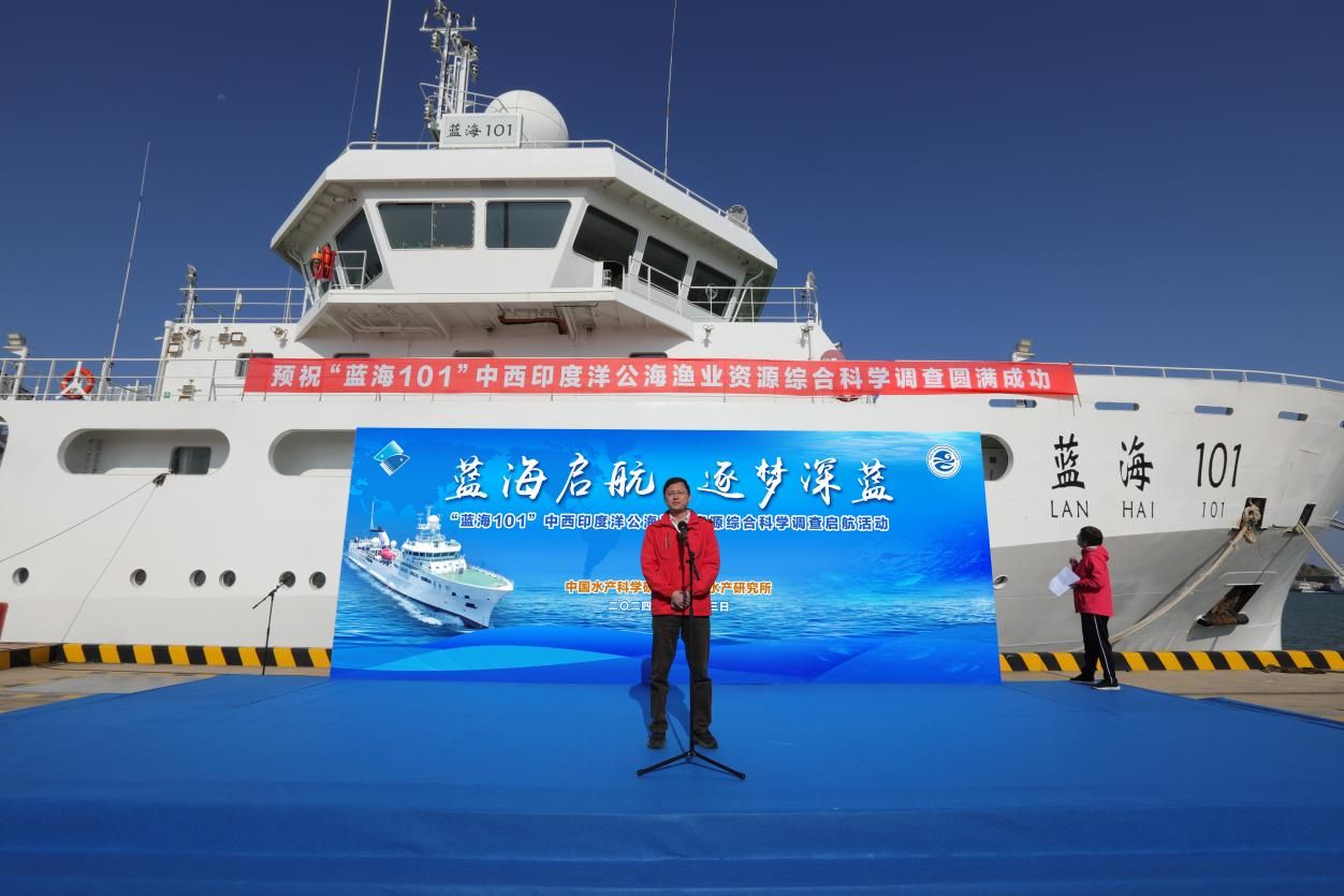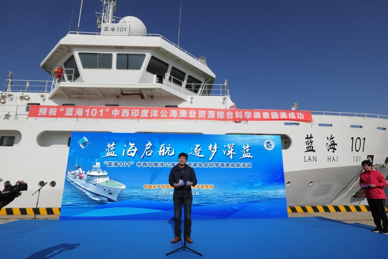 10月23日,中國水產(chǎn)科學(xué)研究院黃海水產(chǎn)研究所“藍(lán)海101”號(hào)調(diào)查船起航執(zhí)行“2024年度中西印度洋公海漁業(yè)資源調(diào)查”航次。出航前,黃海所副所長葉乃好、上海海洋大學(xué)海洋生物資源與管理學(xué)院副院長朱江峰等前往碼頭送行。