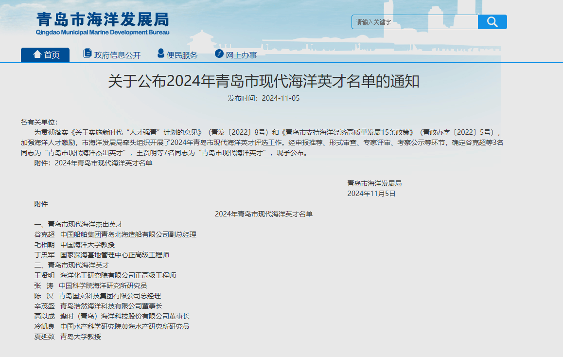 日前,為加強(qiáng)海洋人才激勵(lì),由青島市海洋發(fā)展局牽頭組織開展了2024年“青島市現(xiàn)代海洋英才”評(píng)選工作。經(jīng)申報(bào)推薦、形式審查、專家評(píng)審、考察公示等環(huán)節(jié),最終7名同志榮獲“青島市現(xiàn)代海洋英才”榮譽(yù)稱號(hào),中國(guó)水產(chǎn)科學(xué)研究院黃海水產(chǎn)研究所冷凱良研究員位列其中。