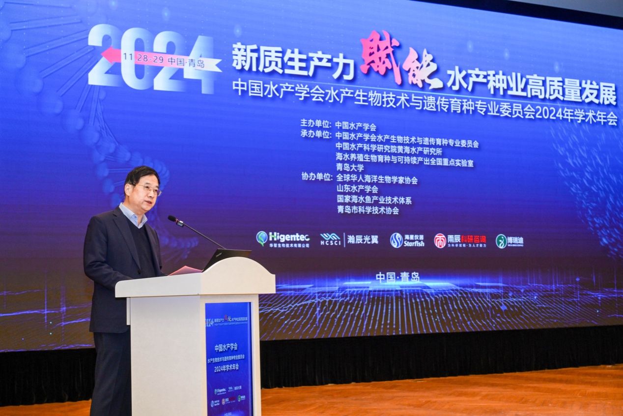 11月28日至29日,中國水產(chǎn)學(xué)會水產(chǎn)生物技術(shù)與遺傳育種專業(yè)委員會2024年學(xué)術(shù)年會在山東省青島市成功舉辦。會議由中國水產(chǎn)學(xué)會主辦,中國水產(chǎn)學(xué)會水產(chǎn)生物技術(shù)與遺傳育種專業(yè)委員會、中國水產(chǎn)科學(xué)研究院黃海水產(chǎn)研究所、海水養(yǎng)殖生物育種與可持續(xù)產(chǎn)出全國重點實驗室、青島大學(xué)共同承辦。本次年會以“新質(zhì)生產(chǎn)力賦能水產(chǎn)種業(yè)高質(zhì)量發(fā)展”為主題,包括“水產(chǎn)養(yǎng)殖生物種質(zhì)資源收集、評價與保存”“水產(chǎn)養(yǎng)殖生物基因資源發(fā)掘與重要性狀遺傳解析”“水產(chǎn)生物育種技術(shù)創(chuàng)新與應(yīng)用”“水產(chǎn)生物良種培育與種業(yè)發(fā)展”等議題。來自全國80多個科研院校和企業(yè)的500余名專家學(xué)者參加了會議。