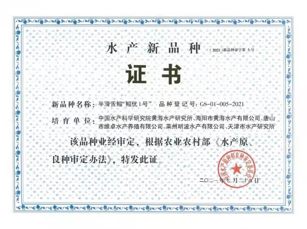 “鰨優(yōu)1號”是陳松林院士帶領(lǐng)團隊聯(lián)合海陽市黃海水產(chǎn)有限公司、唐山市維卓水產(chǎn)養(yǎng)殖公司等歷經(jīng)十余年培育出的首個半滑舌鰨新品種,具有抗哈維氏弧菌病、生長快和養(yǎng)殖存活率高等優(yōu)點,該品種促使半滑舌鰨整體養(yǎng)殖成活率由以往的不到50%提高到70%以上,成為我國水產(chǎn)育種領(lǐng)域抗病育種成功的典范,對于推動種業(yè)發(fā)展、加快魚類抗病育種進程、培育抗病高產(chǎn)優(yōu)質(zhì)的突破性新品種具有重要的戰(zhàn)略意義?!蚌崈?yōu)1號”年培育苗種已達1000萬尾以上,經(jīng)過連續(xù)多年的示范推廣,取得了顯著效果,成為我國“一條魚帶動一方漁業(yè)經(jīng)濟”的典范,成功帶動山東省和河北省多家水產(chǎn)養(yǎng)殖企業(yè)獲批半滑舌鰨良種場和國家級種質(zhì)資源場,并入選國家水產(chǎn)種業(yè)陣型企業(yè)。