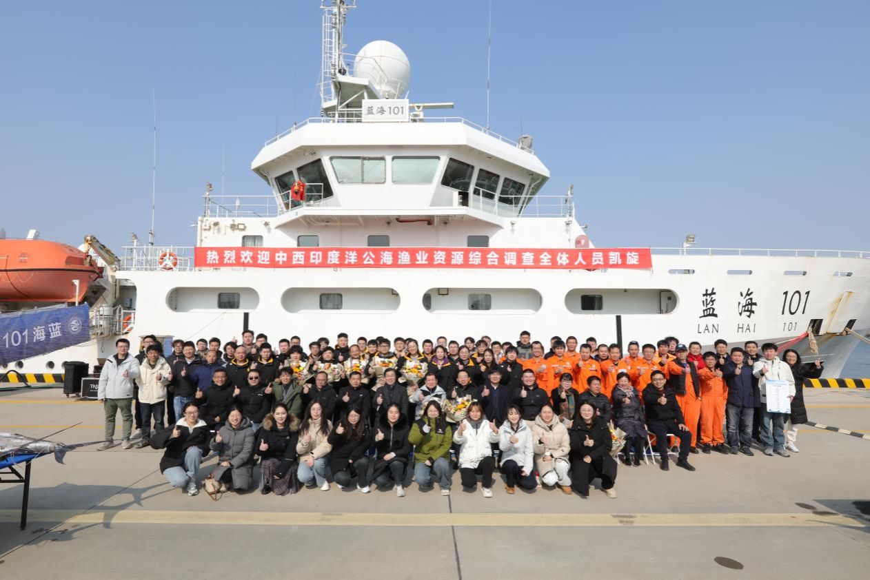 趙憲勇書記在總結(jié)講話中表示,積極開展大洋公海漁業(yè)資源科學(xué)評估調(diào)查,對指導(dǎo)遠(yuǎn)洋漁業(yè)生產(chǎn)、支撐國際漁業(yè)管理、促進(jìn)海洋生物資源可持續(xù)利用均具有重要的意義。此次“藍(lán)海101”號調(diào)查船遠(yuǎn)赴印度洋執(zhí)行科學(xué)調(diào)查任務(wù),高質(zhì)量、高效率完成了全部科學(xué)調(diào)查任務(wù),獲取了詳實而寶貴的海洋漁業(yè)資源與環(huán)境調(diào)查數(shù)據(jù),為支撐大洋漁業(yè)管理提供了第一手資料。希望大家在航次結(jié)束后,及時做好經(jīng)驗總結(jié)和數(shù)據(jù)樣品分析研究,扎實做好漁業(yè)資源評價研究的基礎(chǔ)性工作,為海洋生物資源的可持續(xù)利用和捕撈產(chǎn)業(yè)的高質(zhì)量發(fā)展提供高效的科技支撐!