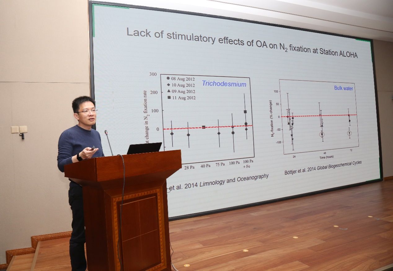 史大林教授作了題為“Nutrient regulation of biological nitrogen fixation in present and future oceans”的學術報告,系統(tǒng)闡述了當前和未來海洋中營養(yǎng)元素對生物固氮作用的調控機制,深入探討了海洋生物固氮在全球碳氮循環(huán)中的重要作用,并分析了全球氣候變化背景下海洋生物固氮過程的變化趨勢。