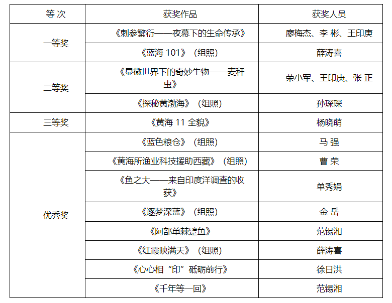 中國水產(chǎn)科學(xué)研究院黃海水產(chǎn)研究所認(rèn)真對待、精心安排,組織全所干部職工積極響應(yīng)、踴躍投稿,推薦的作品中有13幅作品分獲一、二、三等獎和優(yōu)秀獎,黃海所獲優(yōu)秀組織獎。