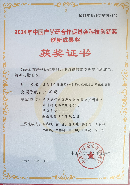 中國(guó)水產(chǎn)科學(xué)研究院黃海水產(chǎn)研究所田永勝研究員主持完成的“石斑魚優(yōu)良新品種培育技術(shù)創(chuàng)建及產(chǎn)業(yè)化應(yīng)用”項(xiàng)目榮獲創(chuàng)新成果二等獎(jiǎng),徐永江研究員主持的“黃條鰤苗種規(guī)?;庇秃j懡恿︷B(yǎng)殖技術(shù)體系構(gòu)建與示范”項(xiàng)目榮獲創(chuàng)新成果三等獎(jiǎng);黃海所成果轉(zhuǎn)化案例入選中國(guó)產(chǎn)學(xué)研深度融合好案例。