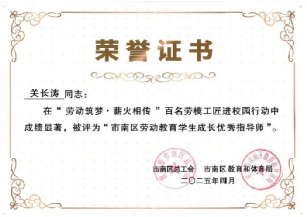 4月30日,“勞動筑夢·先鋒引領(lǐng)”青島市市南區(qū)慶“五一”國際勞動節(jié)大會暨勞模工匠進(jìn)校園表揚(yáng)會在市南區(qū)政府召開。會議通報了市南區(qū)榮獲2025年省、市五一勞動獎情況,對30名勞動教育學(xué)生成長優(yōu)秀指導(dǎo)師及30個勞動育人示范校(園)進(jìn)行了表揚(yáng),并頒發(fā)了證書及獎牌。青島市勞動模范、中國水產(chǎn)科學(xué)研究院黃海水產(chǎn)研究所關(guān)長濤研究員榮獲“市南區(qū)勞動教育學(xué)生成長優(yōu)秀指導(dǎo)師”稱號。