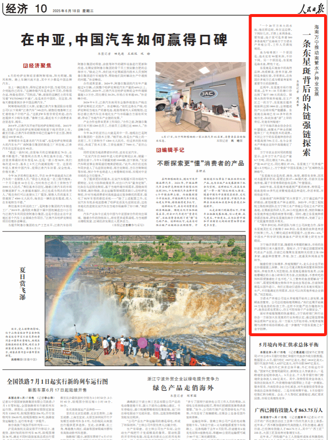 6月18日,《人民日報(bào)》以《一條東星斑背后的補(bǔ)鏈強(qiáng)鏈探索》為題,報(bào)道了中國水產(chǎn)科學(xué)研究院黃海水產(chǎn)研究所陳松林院士團(tuán)隊(duì)在海南萬寧推動(dòng)南繁水產(chǎn)種業(yè)發(fā)展的相關(guān)工作。