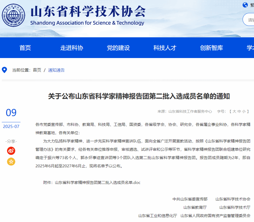此次遴選,按照《山東省科學(xué)家精神報告團(tuán)管理辦法》有關(guān)要求,經(jīng)各有關(guān)單位推薦申報、審核遴選、試講評審和公示等環(huán)節(jié),省科學(xué)家精神報告團(tuán)聯(lián)合組建單位研究確定了73名個人和3個團(tuán)隊入選第二批山東省科學(xué)家精神報告團(tuán),聘期2年,旨在大力弘揚(yáng)科學(xué)家精神,充實(shí)科學(xué)家精神宣講隊伍,面向全省廣泛開展宣教活動。