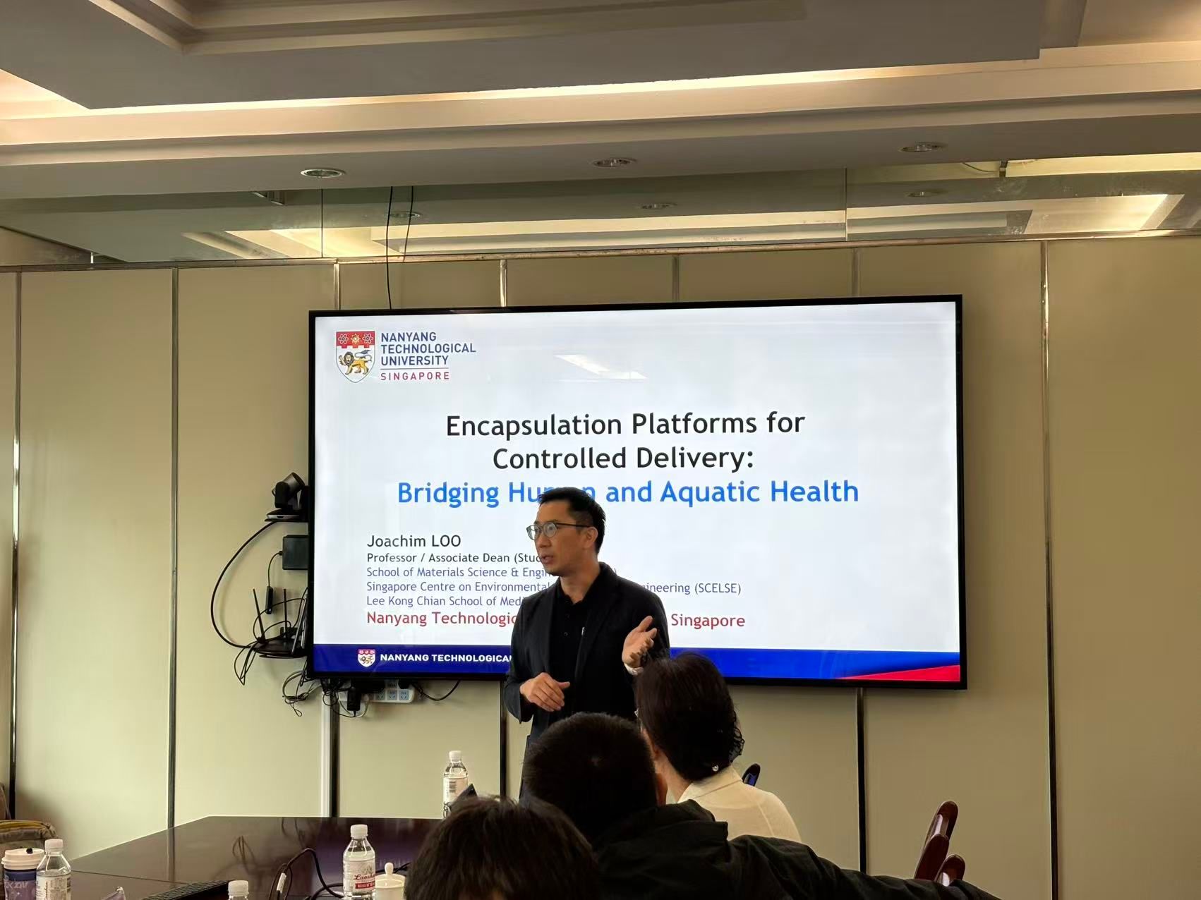 訪問期間,Loo教授作了題為“控釋包封平臺——連接人類健康與水產(chǎn)安全的紐帶”的學術(shù)報告,系統(tǒng)介紹了其團隊在營養(yǎng)物質(zhì)與活性成分控釋包封技術(shù)方面的最新研究進展。該技術(shù)通過實現(xiàn)營養(yǎng)素、益生菌及免疫活性物質(zhì)的精準遞送,為提升養(yǎng)殖動物健康水平和水產(chǎn)產(chǎn)品質(zhì)量提供了新思路。雙方科研人員圍繞控釋技術(shù)在水產(chǎn)動物營養(yǎng)調(diào)控、水產(chǎn)疾病防控、循環(huán)水養(yǎng)殖系統(tǒng)優(yōu)化等方面的應用前景進行了深入交流與探討。
