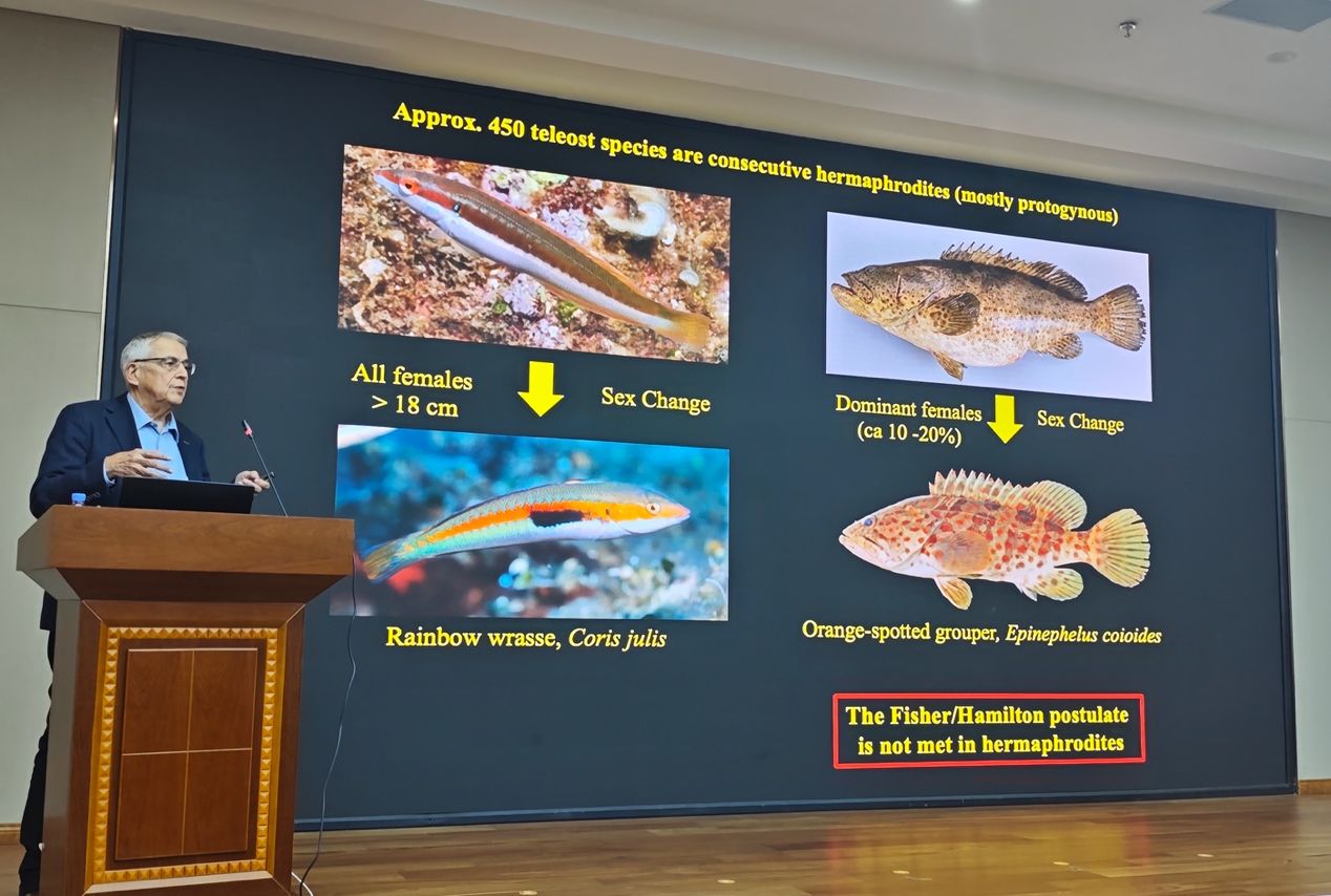 23日,陳松林院士主持,Manfred Schartl教授應(yīng)邀作題為“Evolution of sex determination mechanisms and sex chromosomes in fish”的學(xué)術(shù)報(bào)告,系統(tǒng)介紹了其團(tuán)隊(duì)在魚類性別決定分子機(jī)制、性染色體演化研究方面的最新進(jìn)展,深入探討了基因組進(jìn)化與性別調(diào)控之間的關(guān)系。報(bào)告內(nèi)容前沿、信息豐富,引起了與會(huì)人員的極大興趣和熱烈討論。