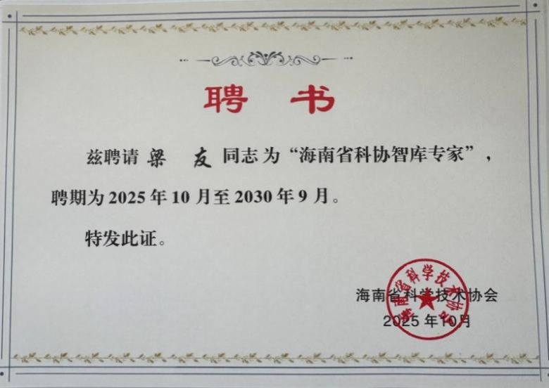 近日,中國水產(chǎn)科學(xué)研究院黃海水產(chǎn)研究所退休干部梁友副研究員獲聘首批“海南省科協(xié)智庫專家”。“海南省科協(xié)智庫專家”是海南省科學(xué)技術(shù)協(xié)會為支持海南自貿(mào)港建設(shè)和發(fā)展,面向自然科學(xué)領(lǐng)域及科技戰(zhàn)略研究領(lǐng)域的專業(yè)人才設(shè)立的咨詢團隊?。
