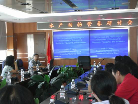 在研討會(huì)上,Silas S.O. HUNG教授為來(lái)自黃海所和中國(guó)海洋大學(xué)等單位的40多位研究人員和學(xué)生作了題為“Biochemical and Physiological Responses of Sturgeon to Various Nutrients, Toxicants, and Stresses”的報(bào)告,并與與會(huì)人員就所開展的研究工作進(jìn)行了廣泛交流。