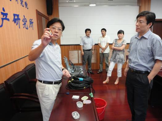 訪問期間,飯?zhí)锖贫淌跒閬碜渣S海所、中國(guó)海洋大學(xué)、大連海洋大學(xué)、中科院海洋所的科研人員及研究生作了題為“亞洲漁業(yè)聲學(xué)研究動(dòng)態(tài)”和“海洋生物超聲波標(biāo)志跟蹤技術(shù)與應(yīng)用”的學(xué)術(shù)報(bào)告。報(bào)告介紹了日本學(xué)者在“聲納在魚群集群習(xí)性與生物量定量評(píng)估”、“海洋動(dòng)物聲學(xué)成像”、“超聲信標(biāo)在魚類行為生態(tài)學(xué)研究中的應(yīng)用”等方面的最新研發(fā)成果。與會(huì)人員對(duì)聲學(xué)成像技術(shù)在魚類性別判斷、超聲信標(biāo)在網(wǎng)箱養(yǎng)殖方面的應(yīng)用表現(xiàn)出極大的興趣,并就相互關(guān)心的問題進(jìn)行了廣泛的交流。雙方還就亞洲漁業(yè)聲學(xué)研究動(dòng)態(tài)與發(fā)展前景進(jìn)行了深入的討論。